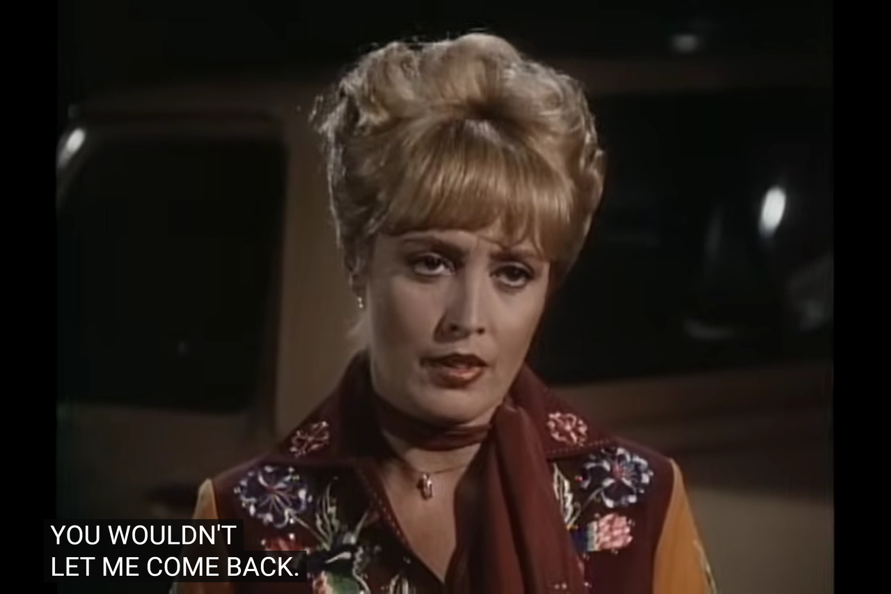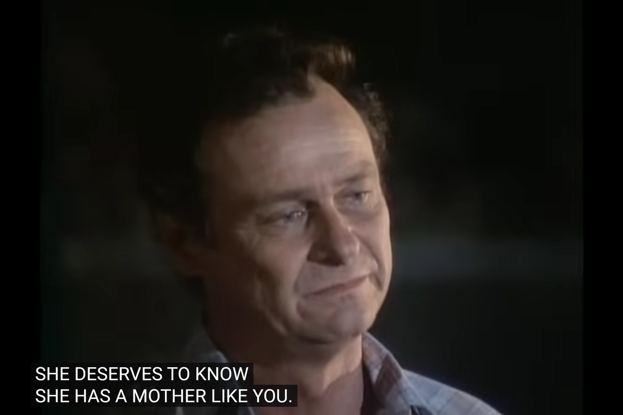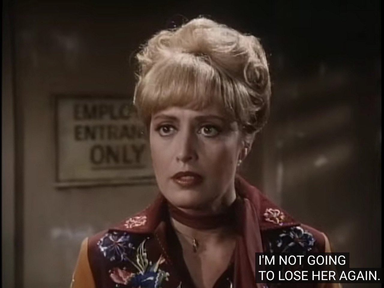 Anyway, after the show, Patsy is about to go home when she is approached by Tim, the gas station’s owner, who calls her “Evelyn”, revealing that “Patsy Meynard” is actually the mother of that girl who was singing by the station earlier, and that she’s not dead, but she ran away to pursue her dream of becoming famous.