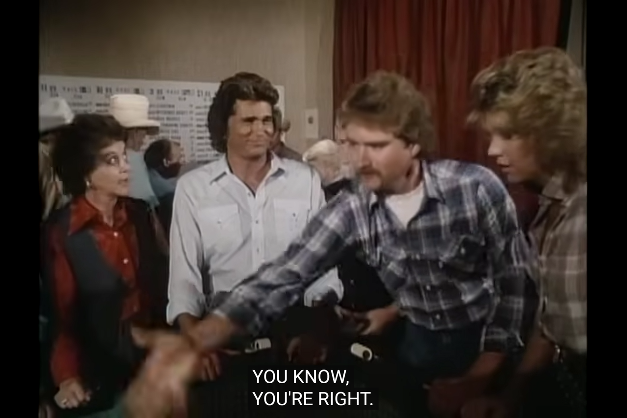 Also, about the actor: he’s Jerry Hardin, who had already collaborated with Landon in 1979 for the fifth season of Little House, where he made an appearance playing a desperate folk robbing Landon’s character of some medicine.