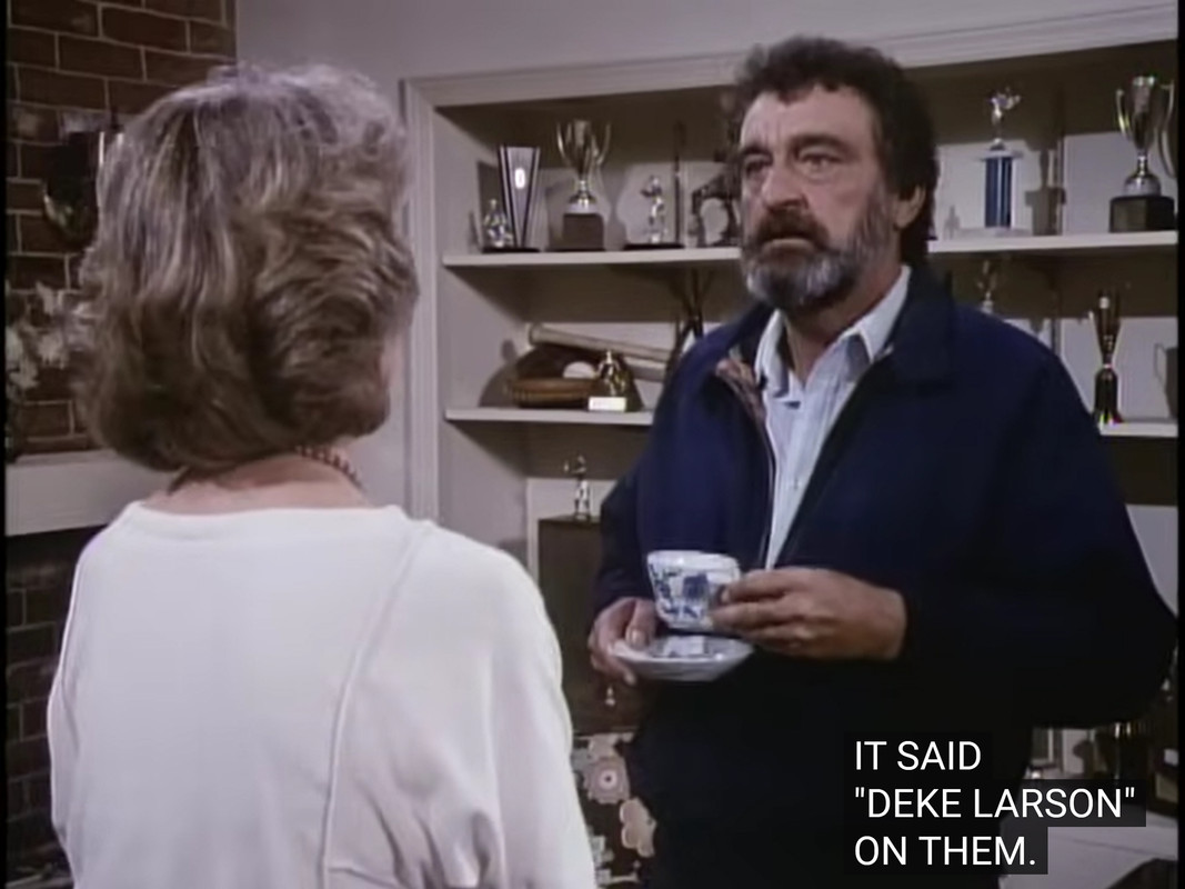 Alright, that’s enough. It’s been literally over two minutes just with these. We get it: there are a lot of trophies and medals and baseball stuff or whatever that all wants to make it clear it’s a sport-related episode. Now, please, move on.