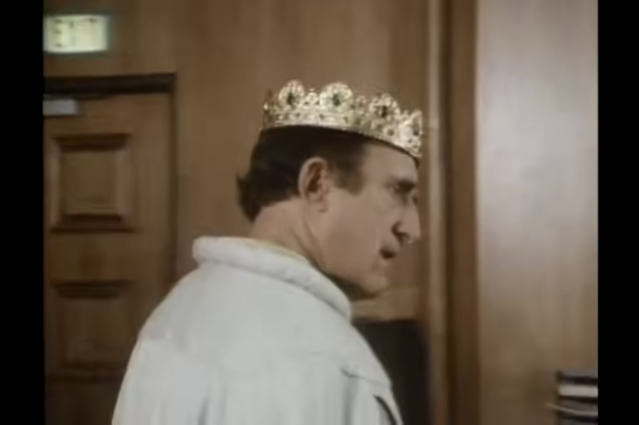 So, this might actually prove he knows he is not really a king somehow. I mean, he doesn’t want to go out because people out there do not recognize him as a king. But, if him himself were absolute certain to be a kig, he wouldn’t need that. Insetad, if he only dwells on this fantasy because he’s in his castle where people do not see him, it reveals he might even aknowledge it is just his fantasy.