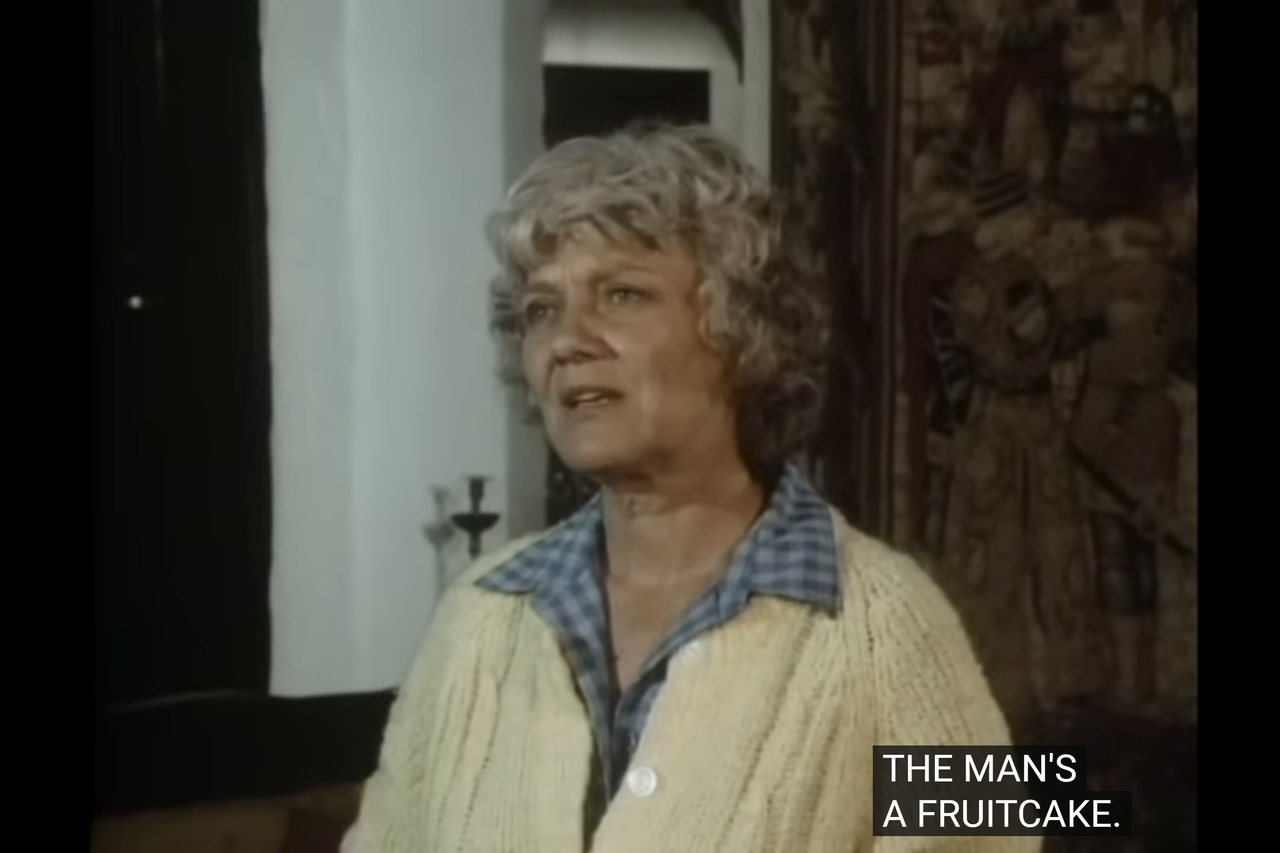 And she says there’s nothing wrong in getting dressed like King Arthur as long as he stays in his home, because we’re all king in our homes. Because, she’s actress Helen Kleeb from The Waltons, she’s seen a lot of things in that family. Actually, she was just a townsfolk there, but whatever.