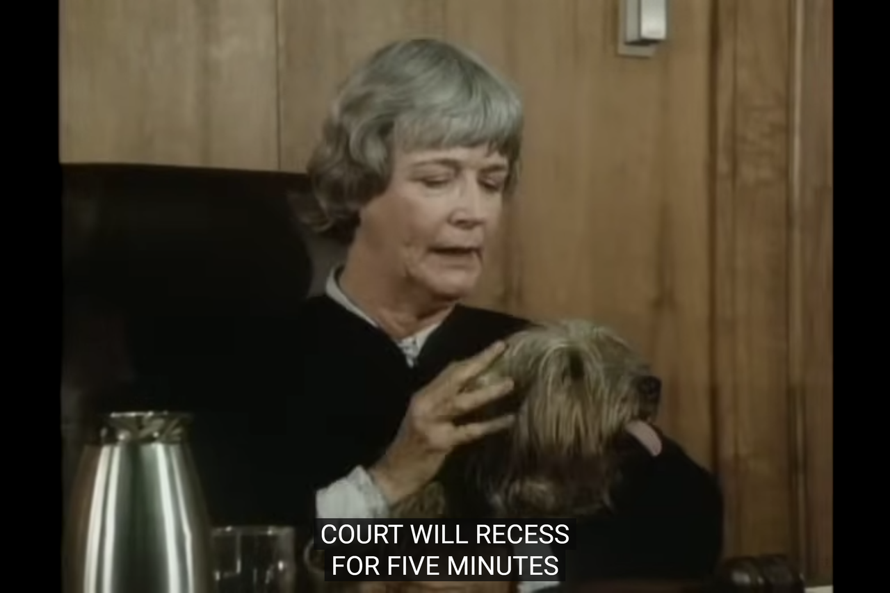 The judge’s pup, of course. The least she could do now is to apologize for this interruption.