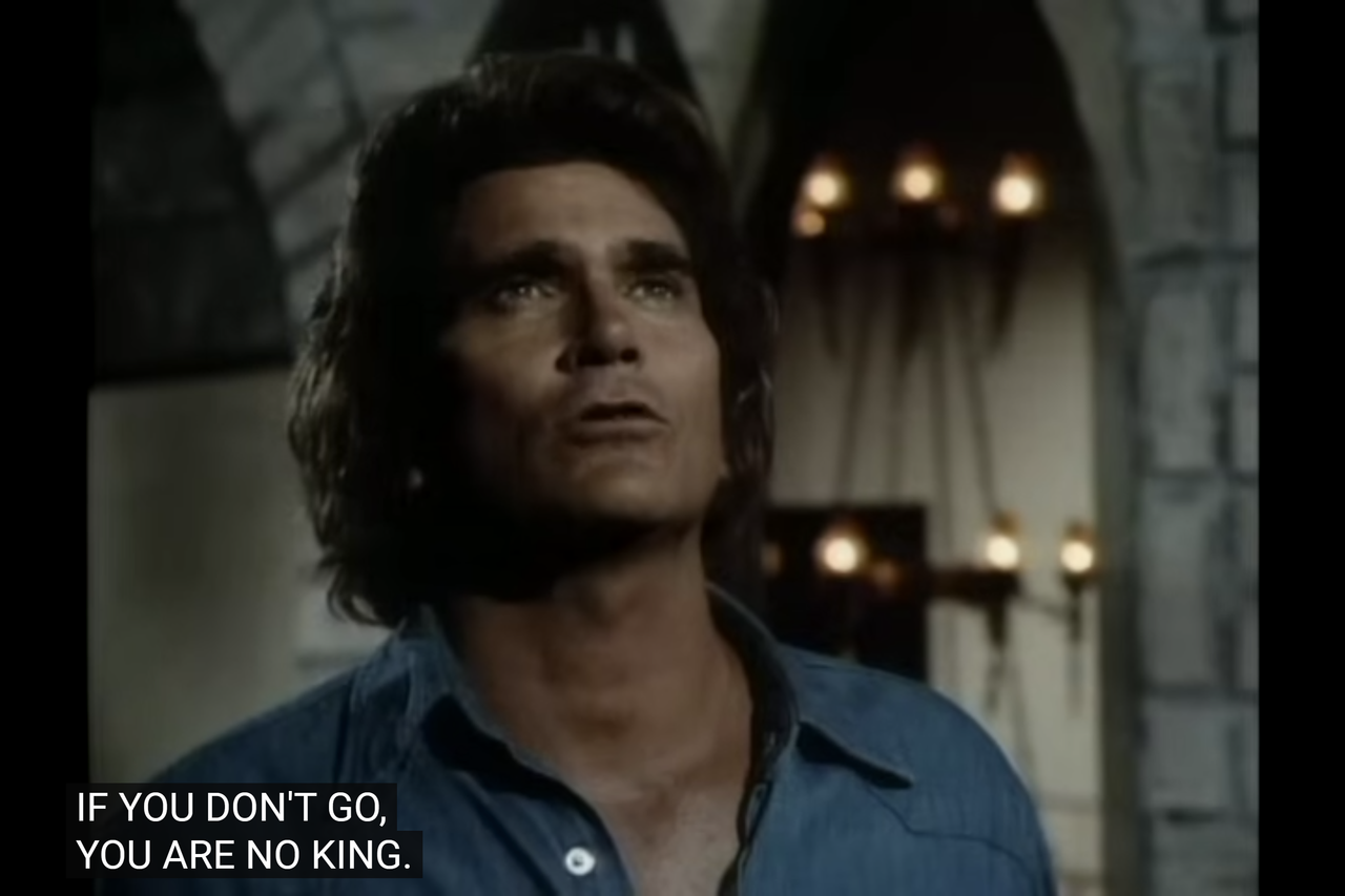 Now, that night King Arthur is torn by self-doubt, as he is afraid to go out into the world.