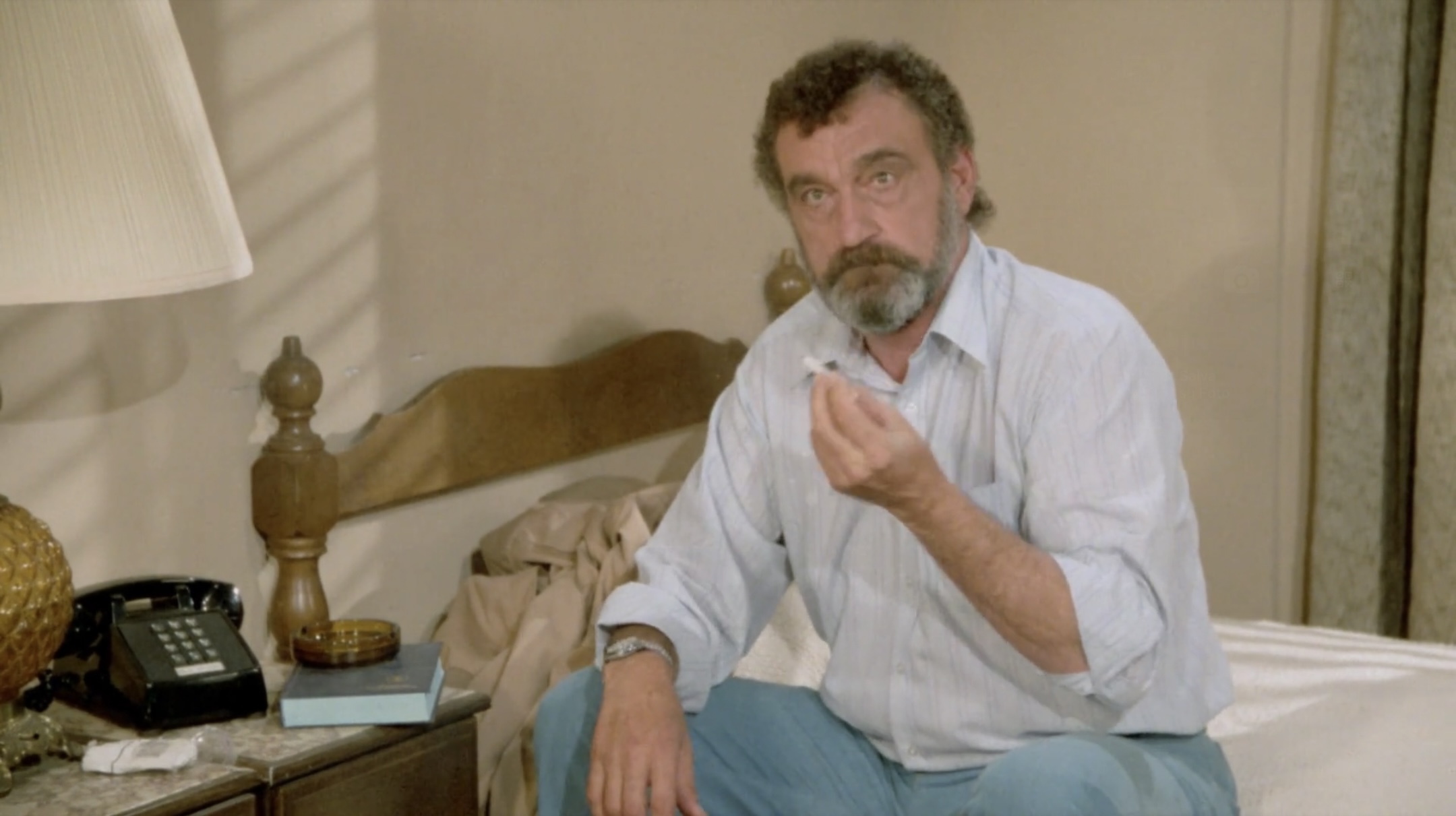 Then, for no apparent reason, Mark pulls a cigarette out of nowhere and starts smoking to pass the time.