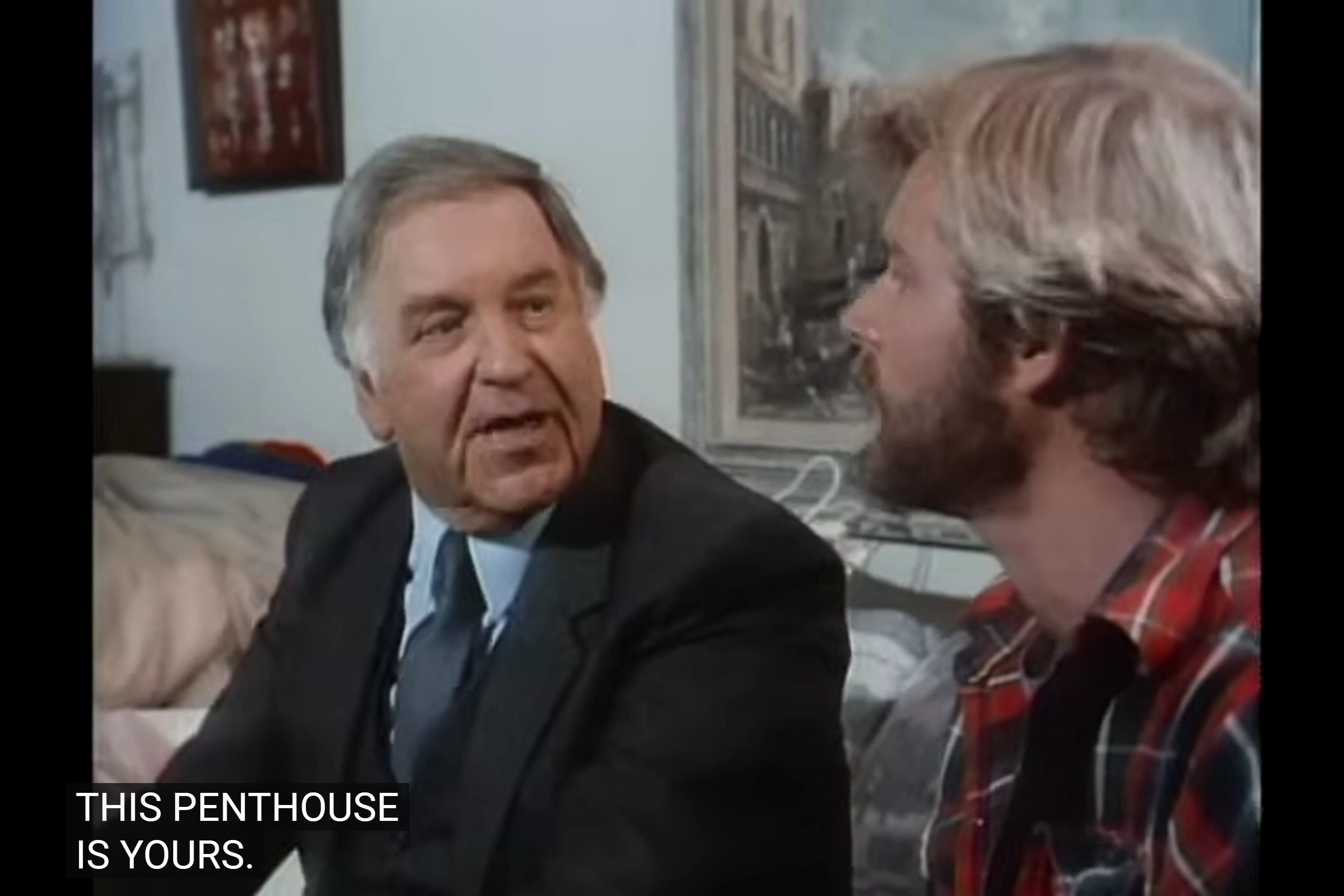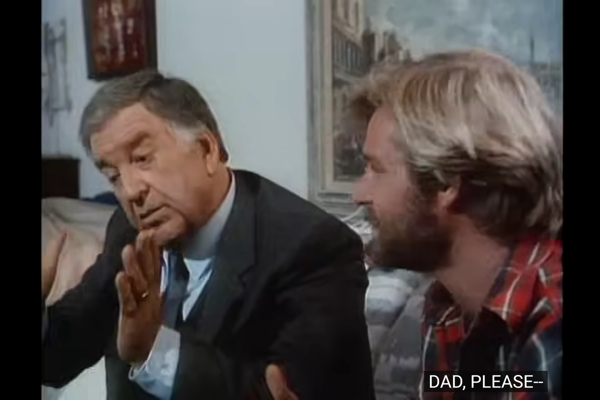 The moment becomes even more awkward when Jonathan points out that Mark promised he would quit smoking—which then implies he knew his friend was smoking and was trying to quit. Like, when did that happen precisely. It’s as though they either completely forgot to address this earlier and wanted to force the smoking issue into the show because, you know, it’s an important matter. Or as if this episode was originally intended to air earlier in the series, but somehow got misplaced (a bit like the previous one). Still, it feels out of place, and their causal, indifferent reaction just confusing. Like, picture Jonathan walking in and finding somebody like Merlin Olsen instead of Mark and then just carrying on casually talking as if it’s always been like that and there’s nothing different from usual — that would be so puzzling and random, yet it’s the same with Mark smoking here.