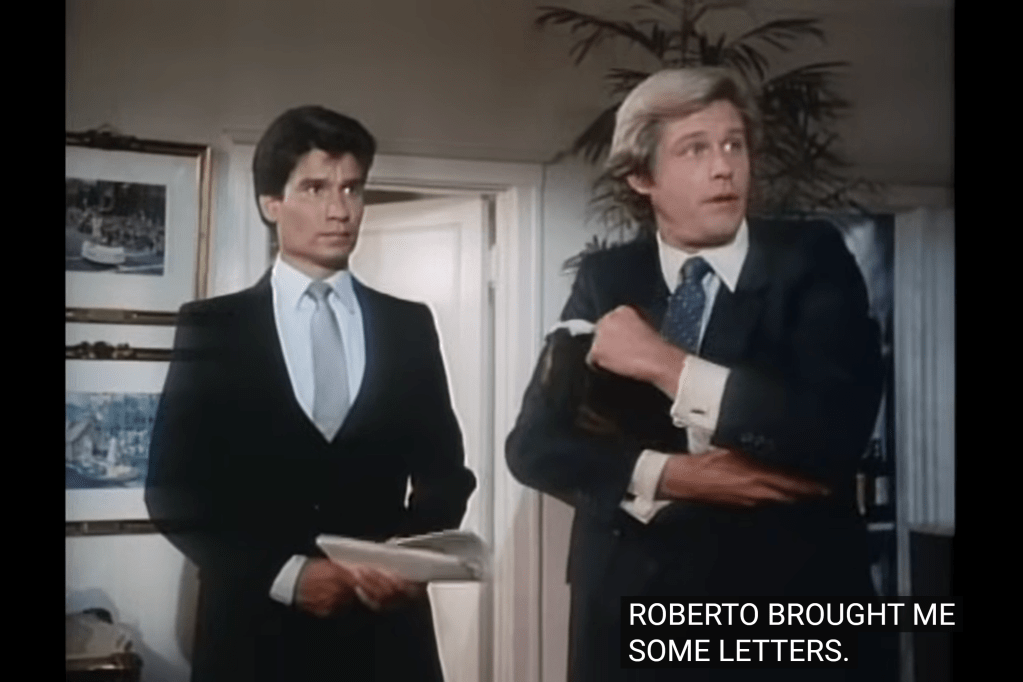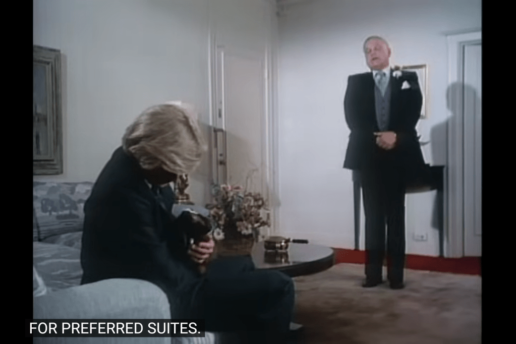 Of course, they didn’t actually build a hotel for the production: that is the Langham Huntington, in Pasadena. Apparently, the hotel shut down in 1985, roughly one year after this episode was produced there, due to an earthquake. And it seems like a curse: if you remember, a couple of assignments ago, there was an episode produced in the famous Malibu Castle, which also closed down some years after the production of the show due to a fire.