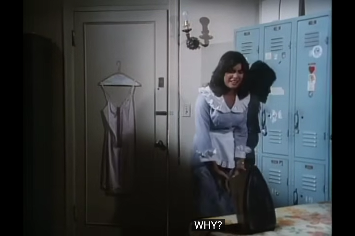 Because, apparently, anyone can go to the ball, even though it was supposed to be for the high school class of 1970. Allison feels humiliated, so she sneaks into the employee dressing room, opens the maid’s locker, and plants her ring inside it.