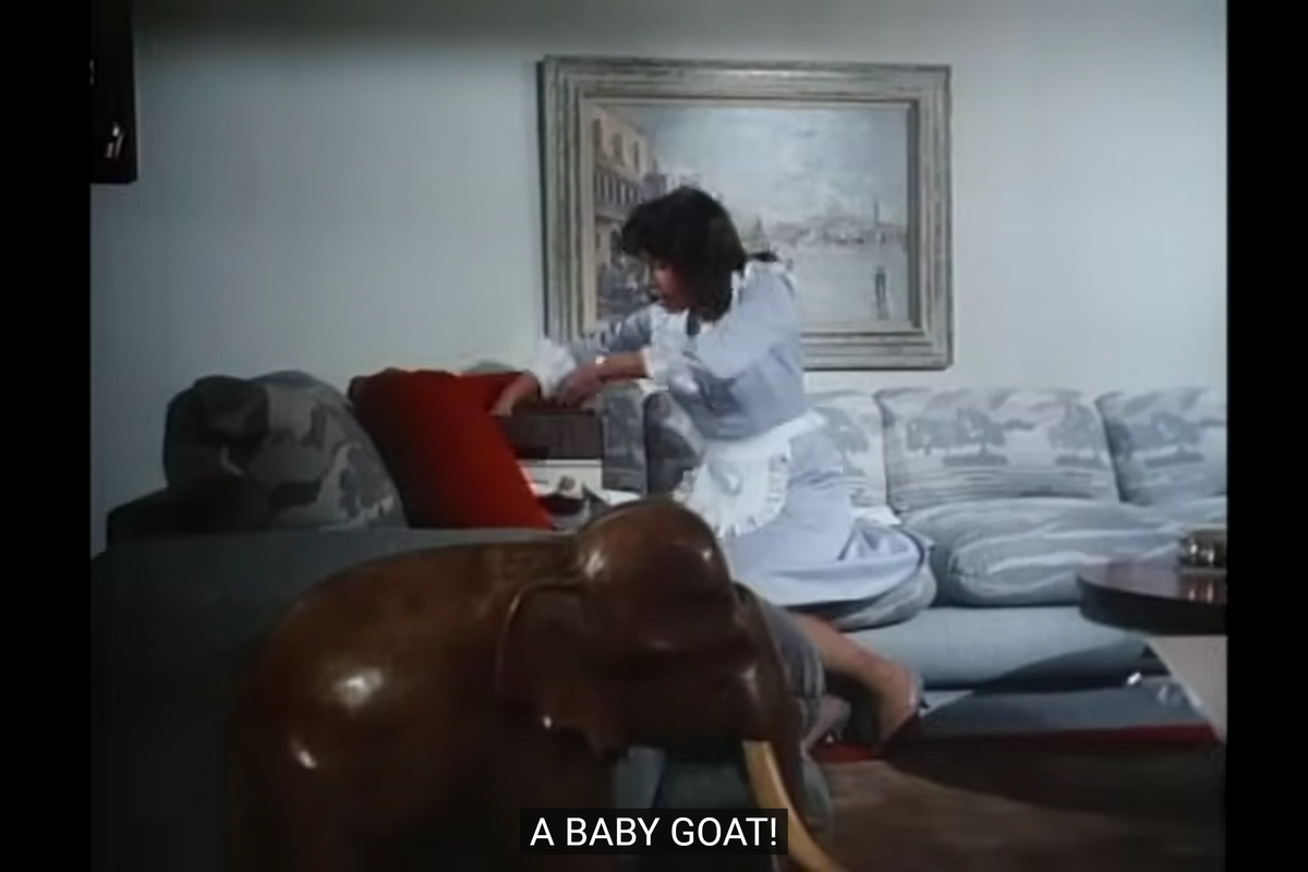 Also, nobody mentions there’s a goat in room, the one Barry brought from his farm. Except the father’s wife.