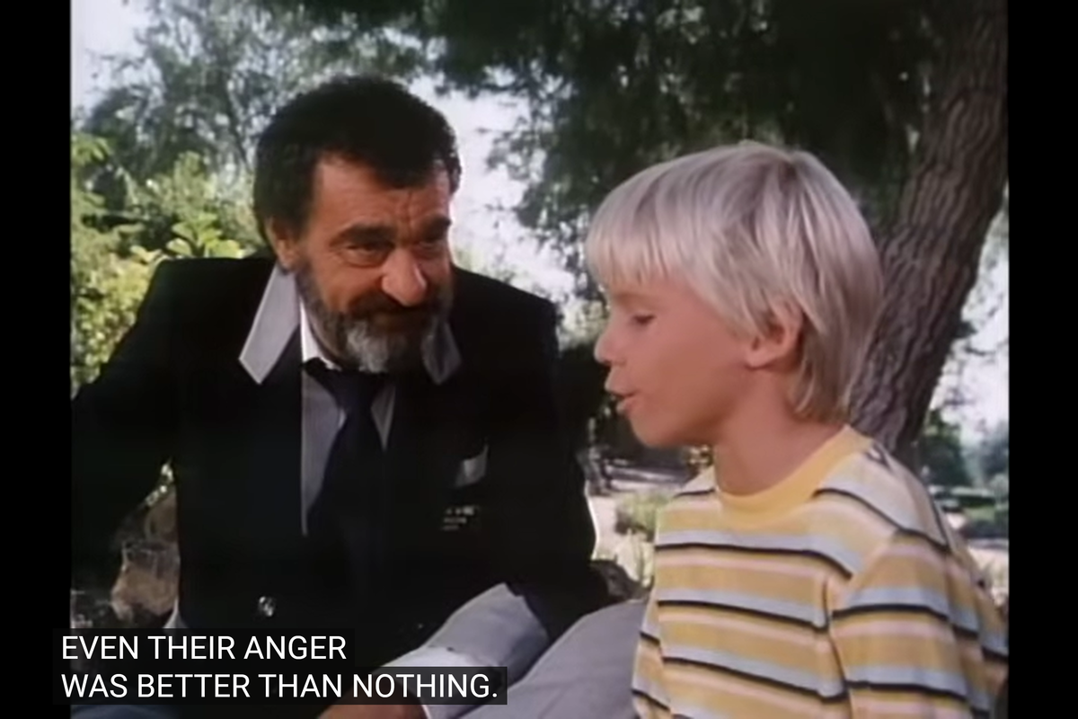 Jonathan, of course, secretly takes the boy’s father to the park and lets him overhear what his son has to say about him.