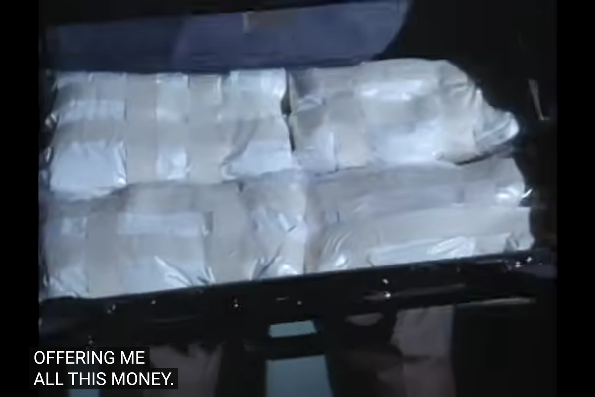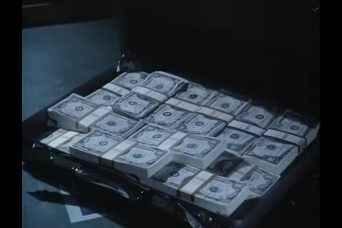Then, Jonathan turns to Mark, who opens a suitcase full of money.