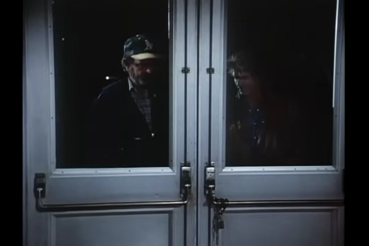 So, just when things seem to be over, Brian and Julie walk up at the school, unaware of what’s been happening. Stick holds them at gunpoint. Then, as Stick is heading out of the school, he spots a police car waiting for him outside, presumably alerted by Jonathan and Mark earlier.