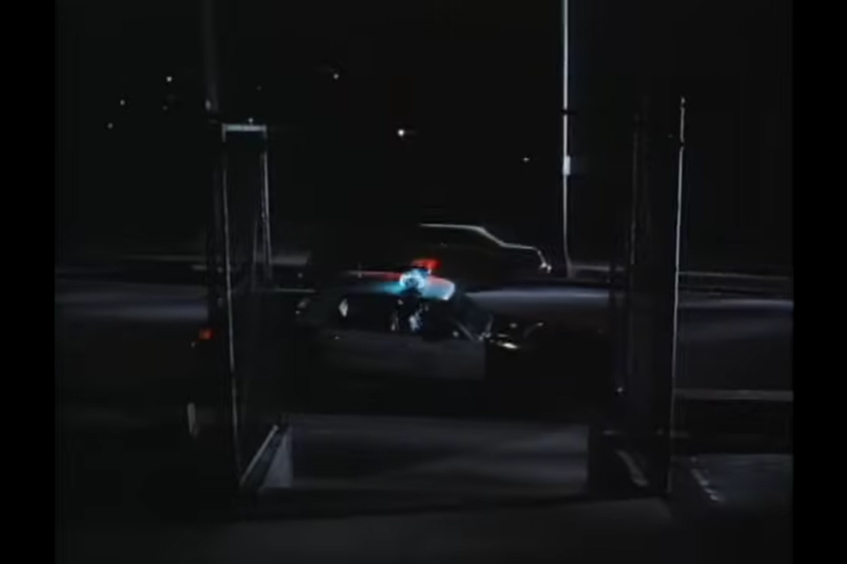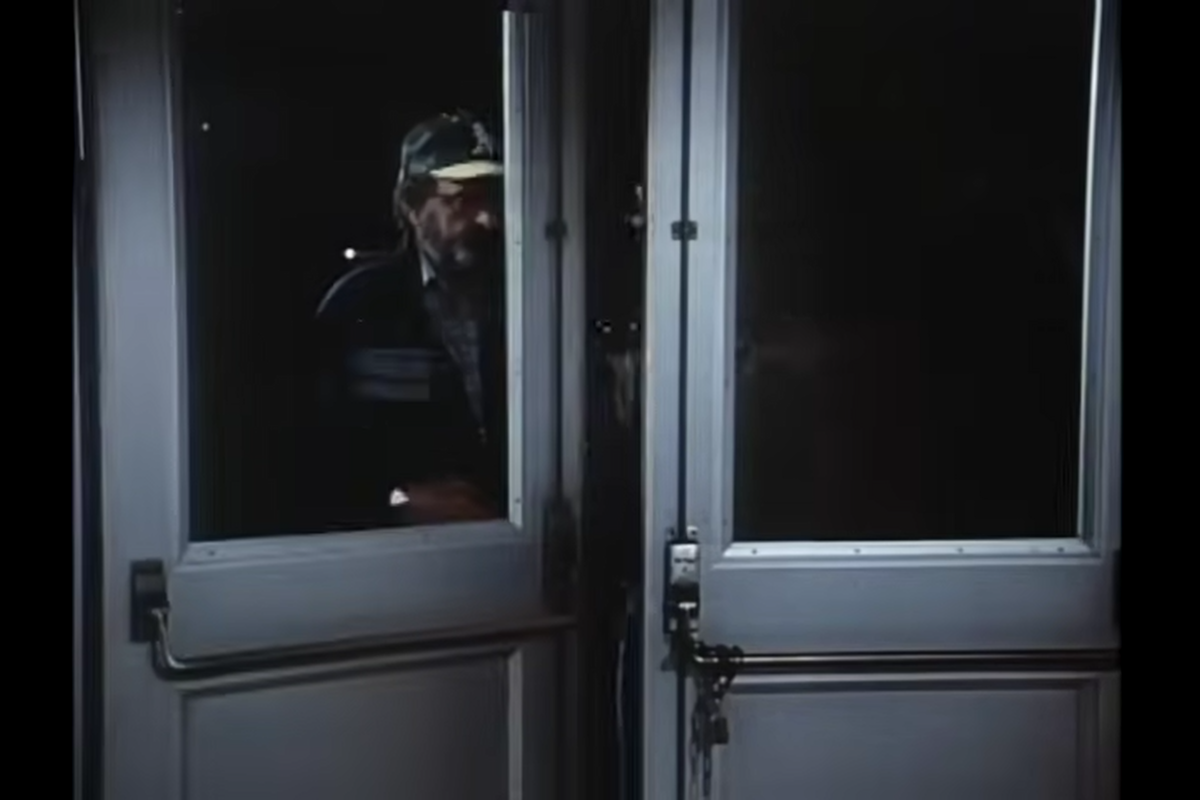 So, when he turns around to drive off, for a moment a mysterious figure with a cap appears in the reflection of the left window of the car.