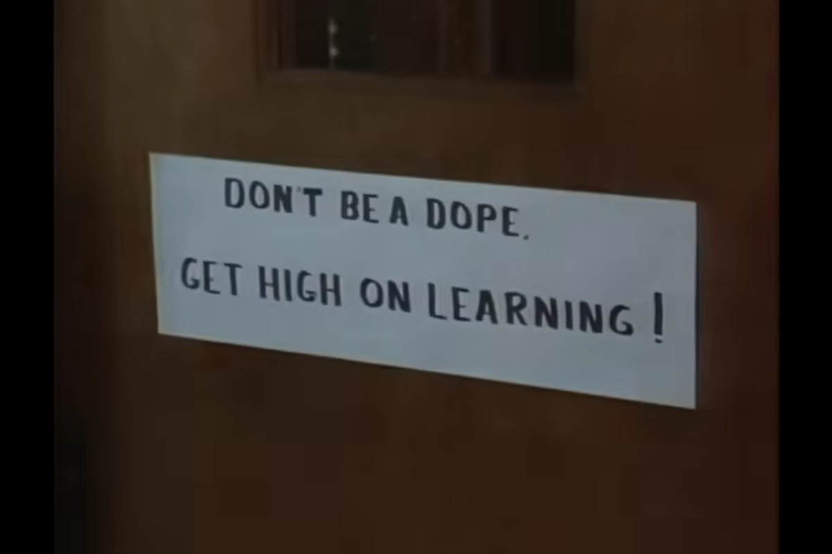 One curious thig: apparently, in the origianl story the sign was just “Don’t be dope”, without the second line. They probably realized it’s a school for kids, and the first line alone was just too much.