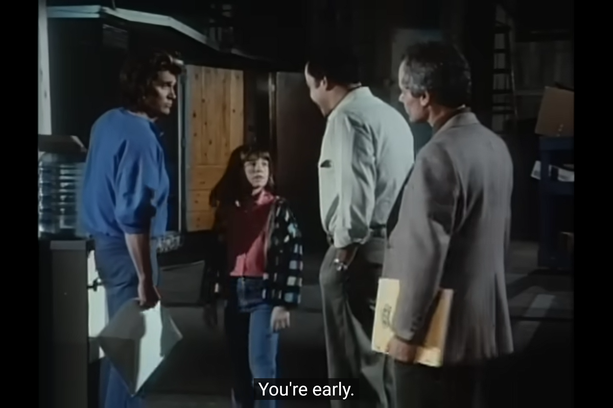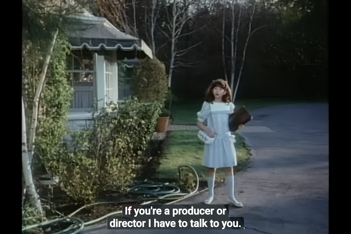If that rings some bells, it’s basically the same thing that happened in Catch a Falling Star — actually, that’s exactly what happened to Brock, the character played by Laura Jacoby’s actual brother: Jonathan takes him on set for some reason that are not having him to play, they think he’s an actor and asks him for a part, he refuses, Jonathan encourages him and he gets the part eventually.