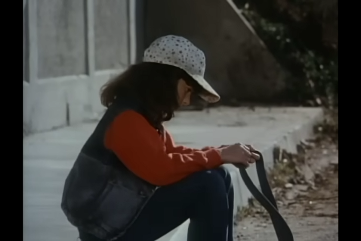 Suddenly, a car pulls up, and she immediately speeds away, opens a wooden gate to a private property and hides inside.