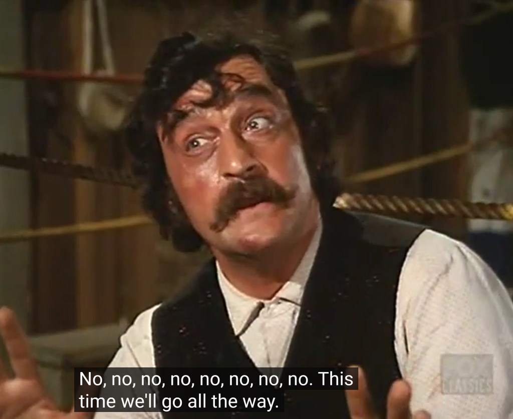 It’s definitely something very different from other Western programs—unexpected, certainly silly, and yet still important (in the context of the actors’ future collaboration). This marked the very beginning of the friendship between the two actors and, viewed that way, it’s just a harmless Western spoof. Also, this gives an idea of what audiences used to watch back then.