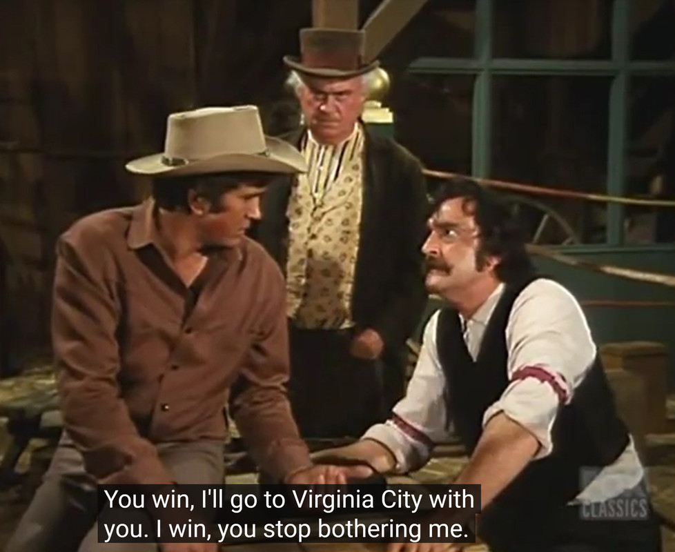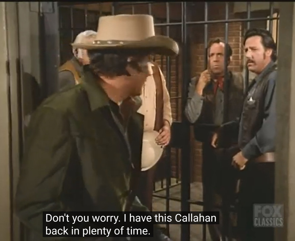 Actually, in the original script, Joe was just supposed to walk with Callahan after inviting him for that drink, and the part in which Joe adds that he’d like Callahan to come to Virginia City and meet his brother was improvised by Landon’s improvisation. That surely doesn’t make sense, considering that Callahan said he can’t go back therebecause he was ran out of it (otherwise, he’d have followed Joe there in the first place), so they probably never see each other again for the rest of the series. But Callahan accepts nonetheless.