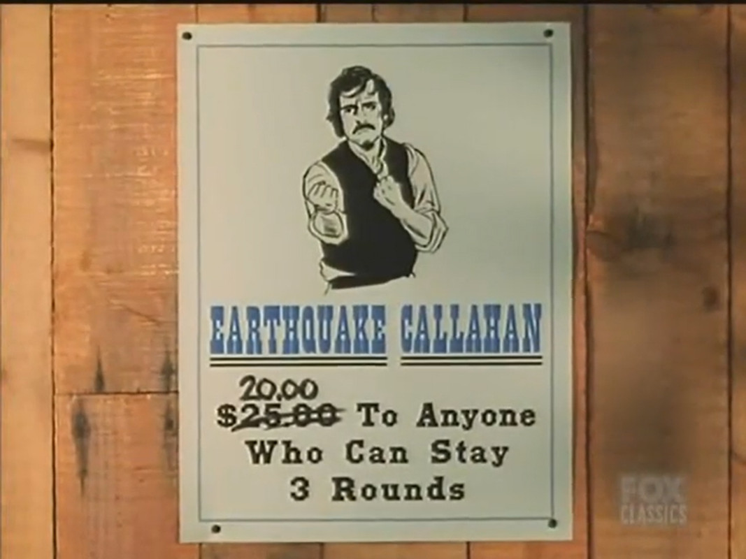 Anyway, once the woman, Angeline, finishes her act, it’s time for Callahan’s match, and one man volunteers to fight him.