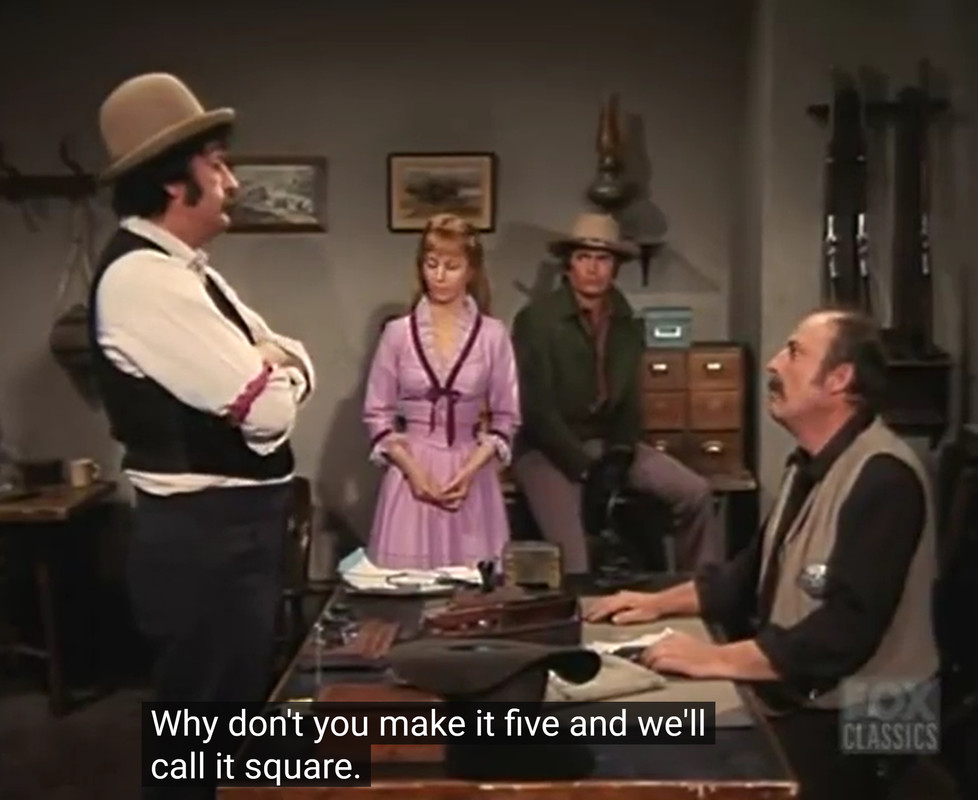 Also, it’s curious to see how, back in the day, actors often bounced from show to show in similar roles—some, like Michael Landon, Lorne Greene, or James Arness (Gunsmoke), only took leading roles, while others, like Victor French and Dub Taylor (even Jean Allison, for that matter) moved from series to series in smaller parts always playing the same type of character (in the case of French, either some ruthless criminal or a comic relief) until someone gave them a chance (as Landon to French on Little House) to play something different. Nothing wrong with that—it just must’ve been tough, always getting the same roles or being overlooked in case they tried to branch out. Still, those kinds of actors are the backbone of many classic western TV episodes.