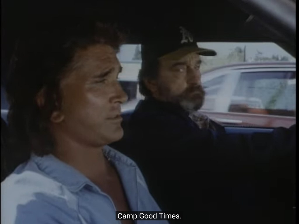As for the setting, it’s just California (that country surely has a lot of problems if Jonathan and Mark are stuck in it), but at least the Summer Camp Good Times is a real one. Apparently (as reported by The L.A. Herald in 1985), the series headwriter Dan Gordon first heard about the camp in a Life article, and decided to write an episode about it. So, he visited the camp on December 1984, during the winter session, in order to make some further research on the subject and get familiar with the environment. On that occasion, he observed the kids, talked to the counselors there and got the chance to meet Jason Haddock, who was attending the camp on that session and who would later become the inspiration for the titular character. Around that time he also got to know Curtis Shafer, the kid serving as the basis for Curtis in the episode.
