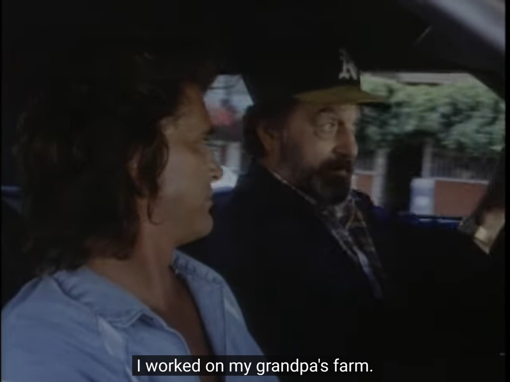 The episode features many actors (both professional and non-professional one): for instance, the character of Curtis is played by Giovanni Ribisi, in his first role. Although he’s bald and younger here, and even credited as “Vonni Ribisi,” it’s definitely him—the same actor from Avatar and Friends; the name change is likely because he wanted to sound more American—people with foreign-sounding names don’t always get the. same attention, and his real name would probably sound too old-fashioned even in Italy for that matter. One curious thing: in an interview with Variety, he reported that when he was a kid, his mentor and model as actor was Geoffrey Lewis, a name that should hit familiar to the Highway audience (he was “Honest Eddy” from season one, and he worked extensively with both Landon and French on Little House before that). So, this episode was sure a great lesson for him.