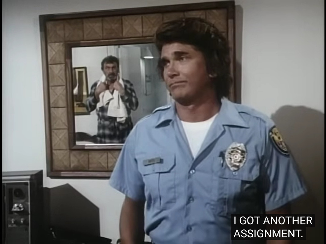 Right from the start, this assignment feels unusual. Notably, there’s no specific objective or person for them to assist. Instead, their job is simply to be cops. It is quite similar to Hotel Of Dreams and A Song For Jason, where the assignment is not related to any person in particular, but rather to the job. But that’s the first time they are cops, and it won’t be the last one: actually, the job of police officer is the most recurring one they’ll have in the series (likely because procedural shows were very popular at the time, and the series wanted some of that as well).