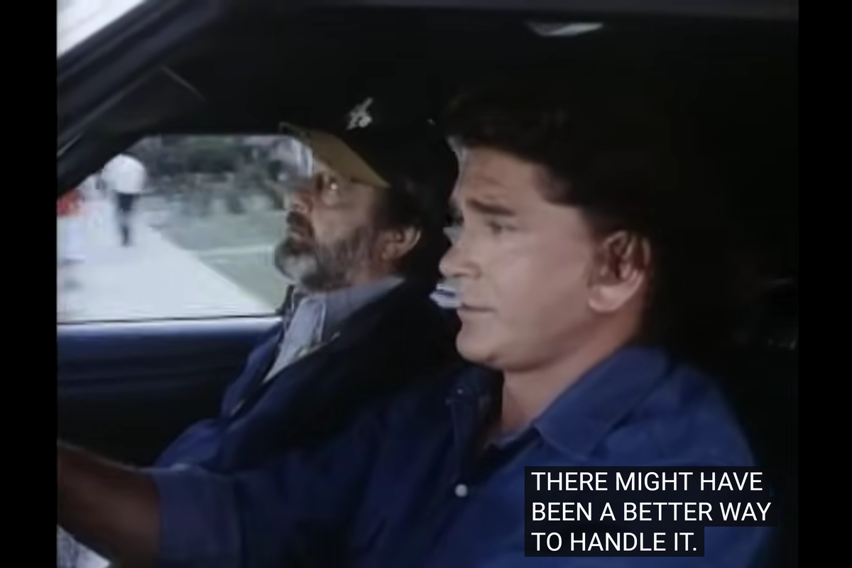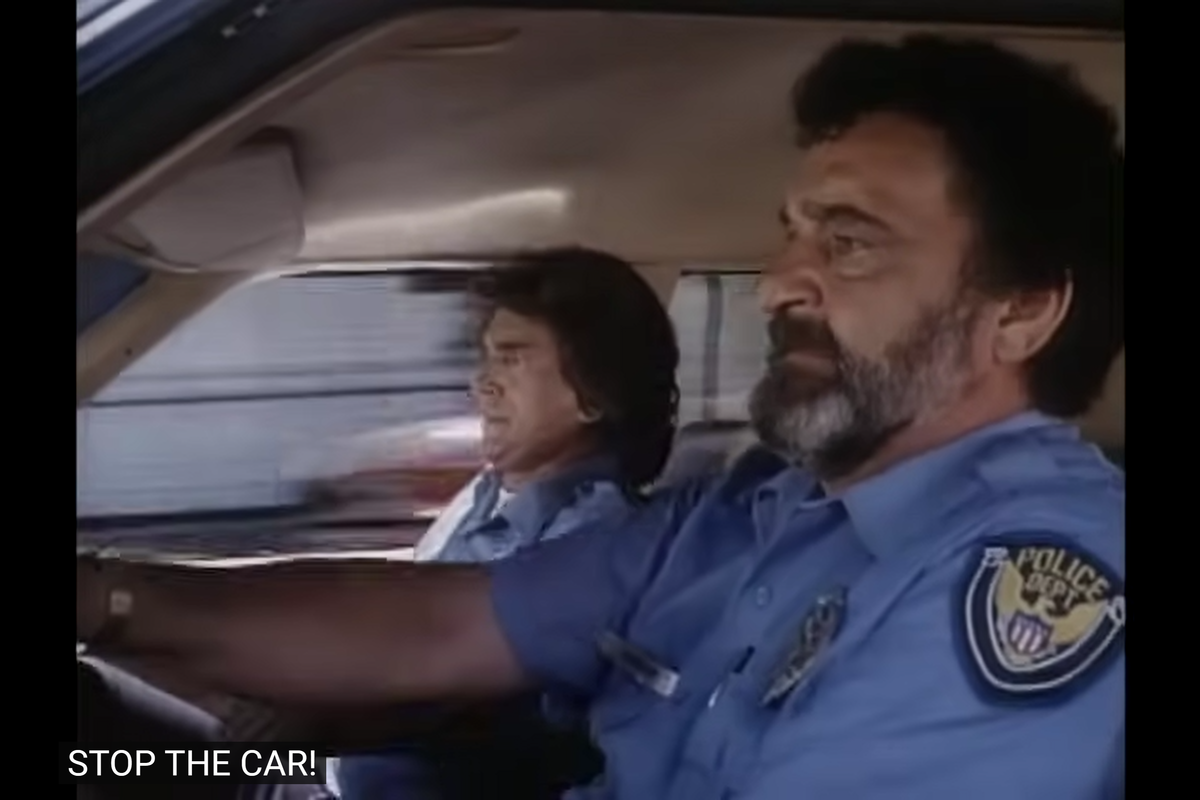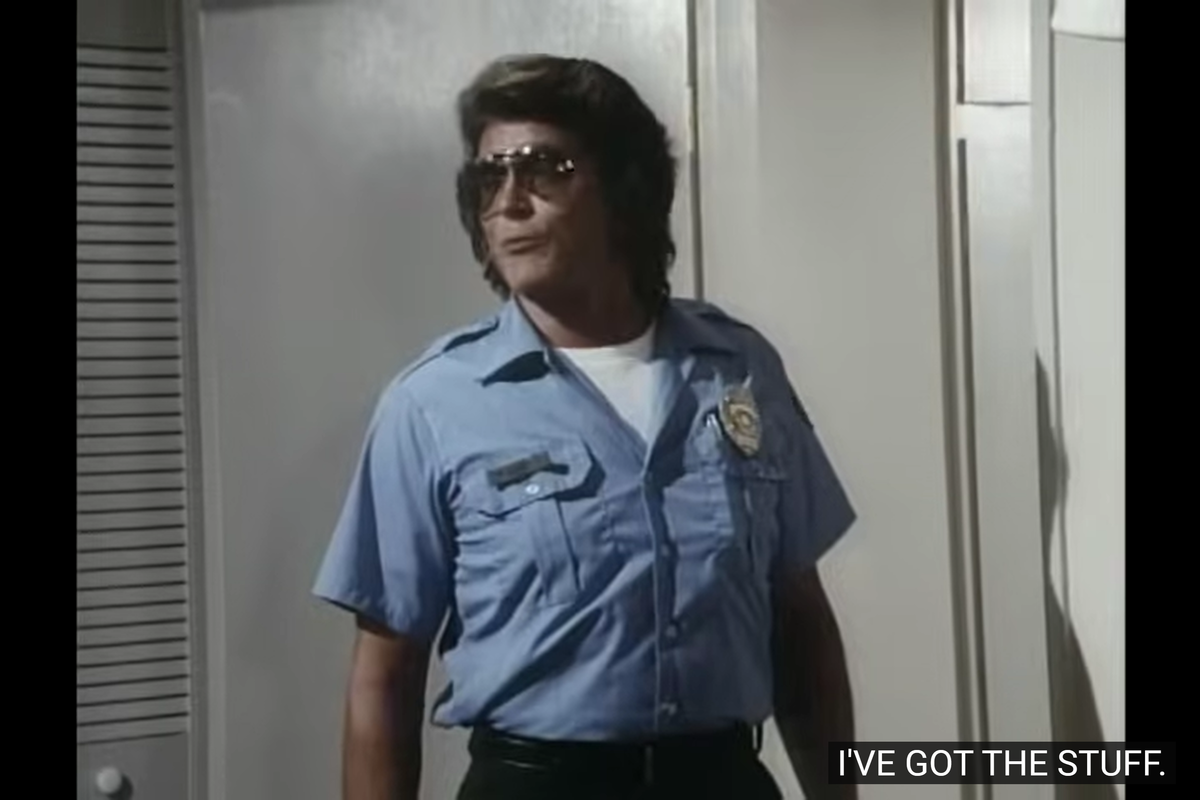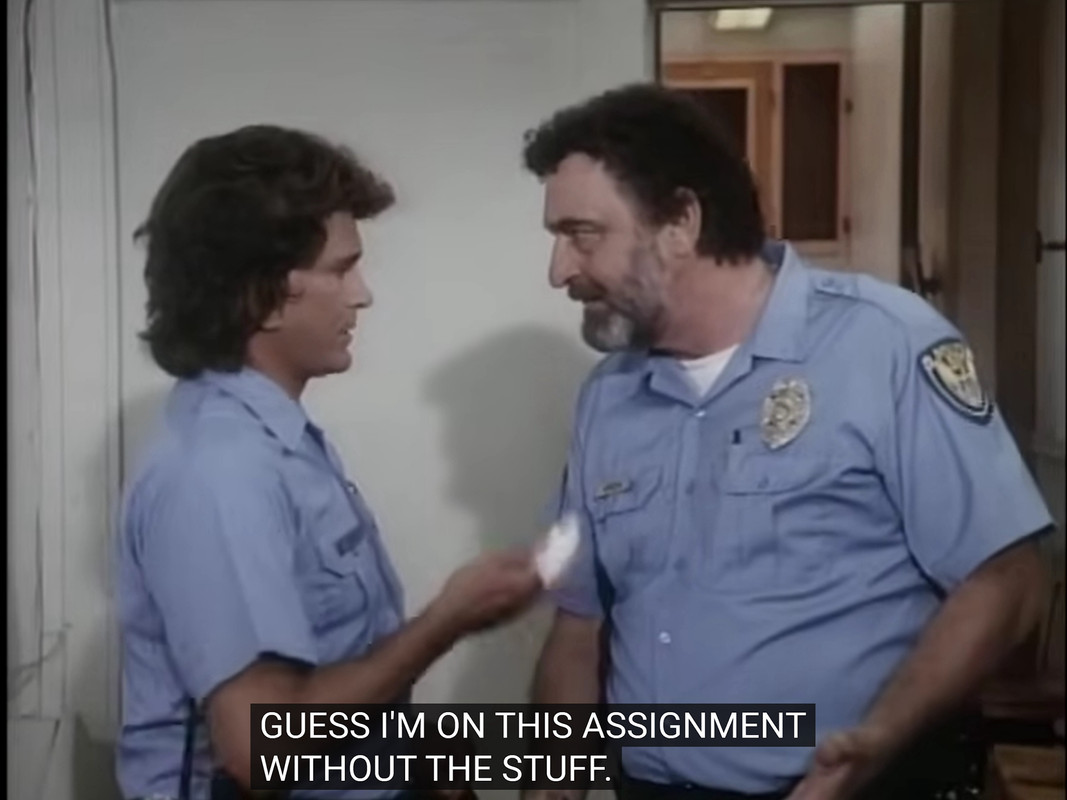 Landon’s sunglasses: it couldn’t possibly be the 80s rookies if cops didn’t wear sunglasses. And Landon has to wear his own.
