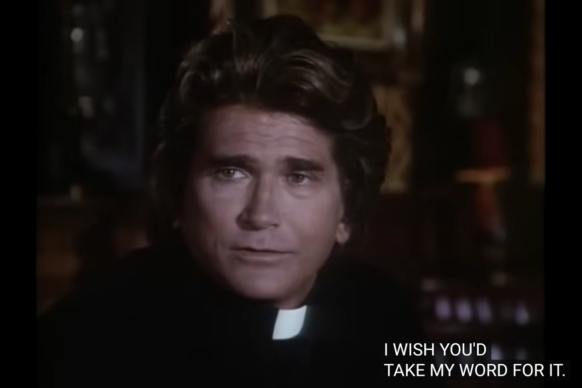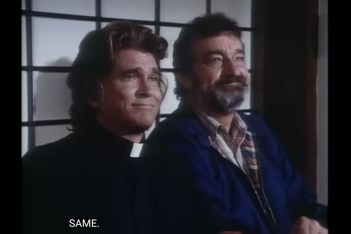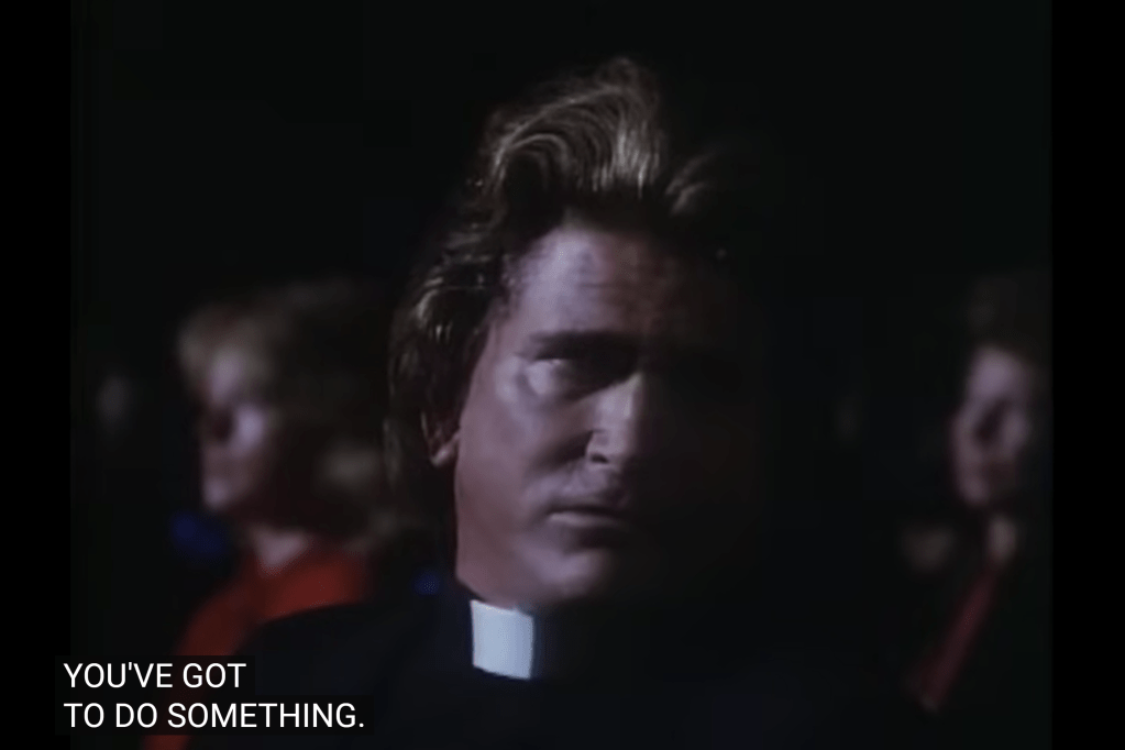 It’s rather weird as assignment for some reason. Apparently, one day Jonathan (dressed up as a priest) and Mark (dressed up as himself) go to see a NY play about a man struggling with his faith. And the actor Fred Fusco, playing the protagonist, is currently struggling with that too, and seemingly hates the role.