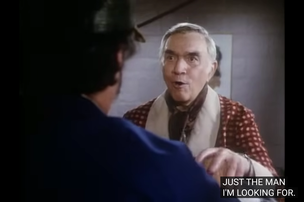 Instead, for the actors, there’s someone to point out: in the episode, the character of Fred Fusco, the protagonist of the assignment, is played by Lorne Greene, a familiar name in western. Now, he’s neither a Little House actor (he never appeared on that series) nor a Highway Actor (he’s not going to appear again in this series). However, he was an old acquaintance to Landon: they had worked together for 14 years on Bonanza, from 1959 until 1973, where Greene played Ben Cartwright and Landon was Joe, his son.