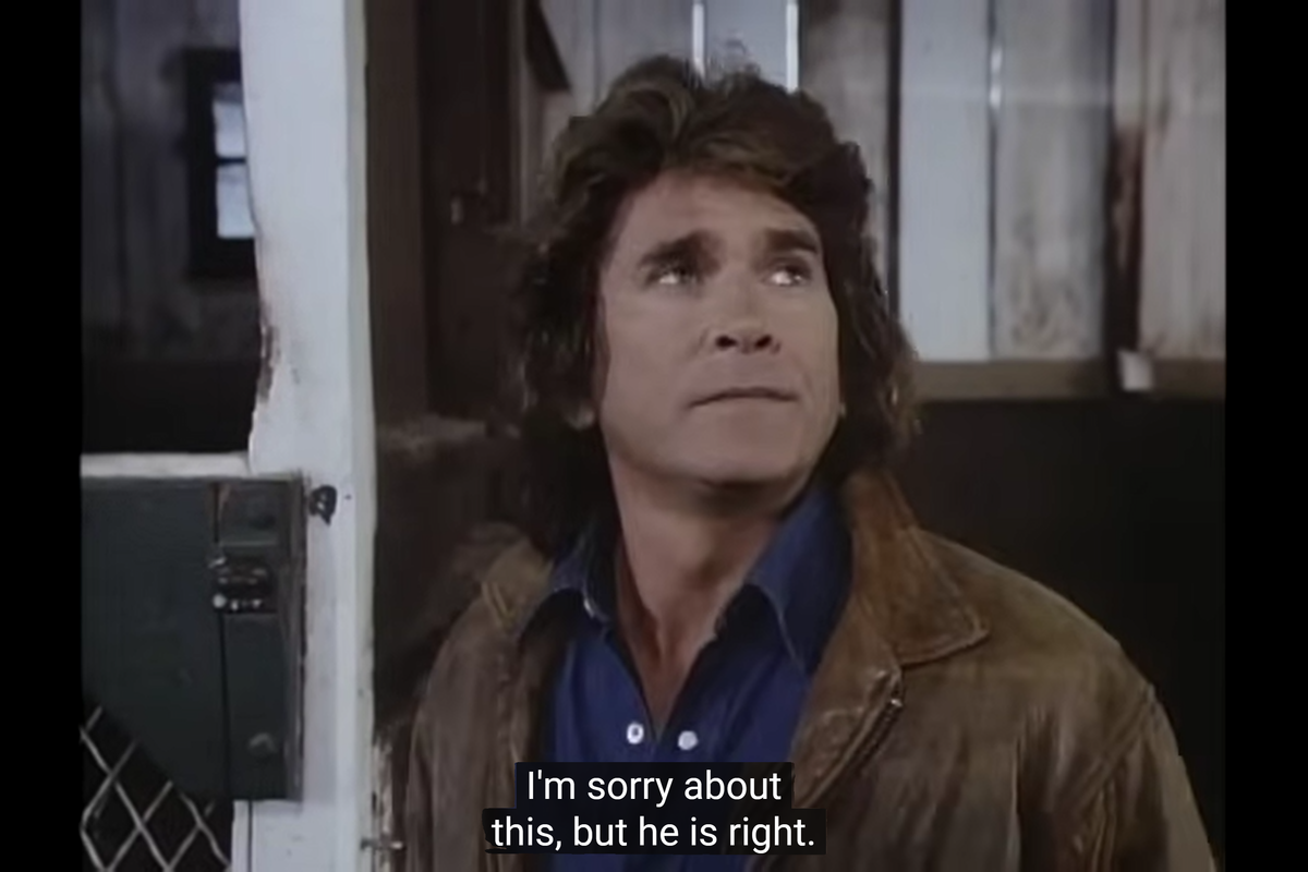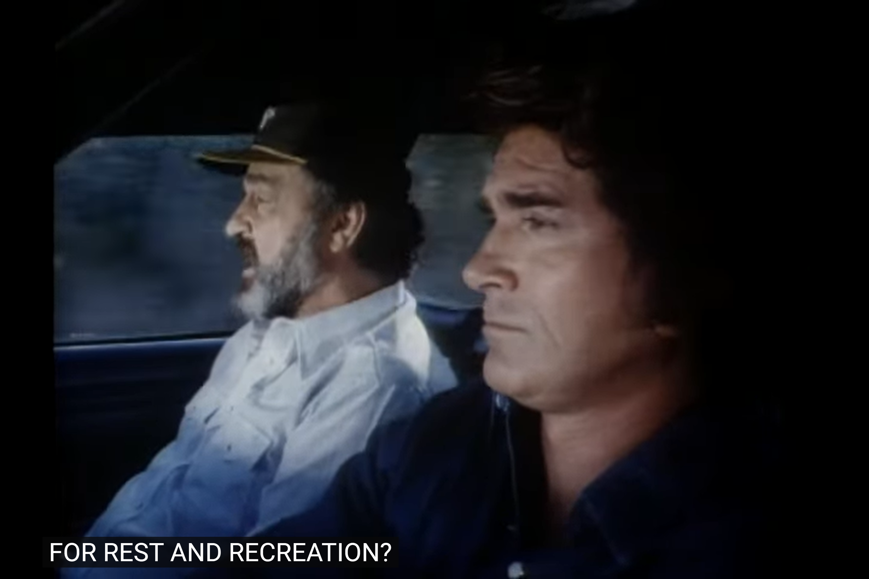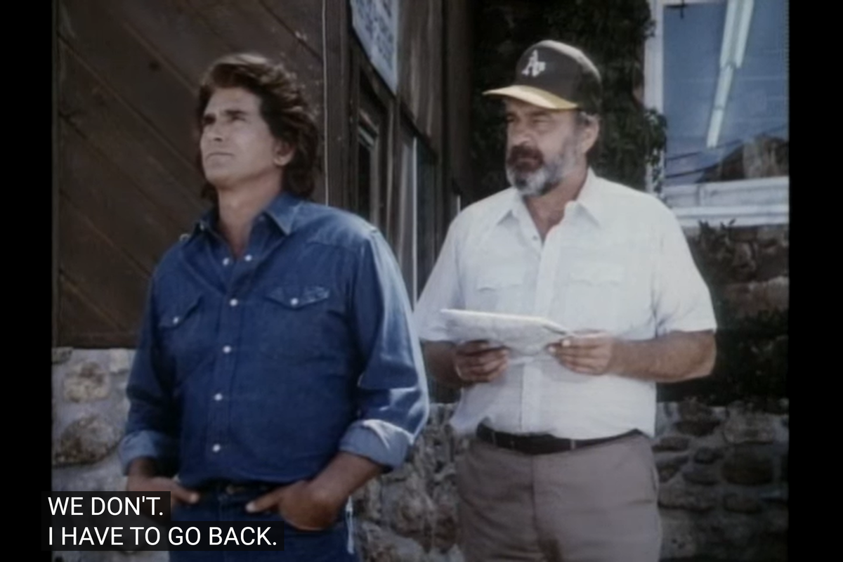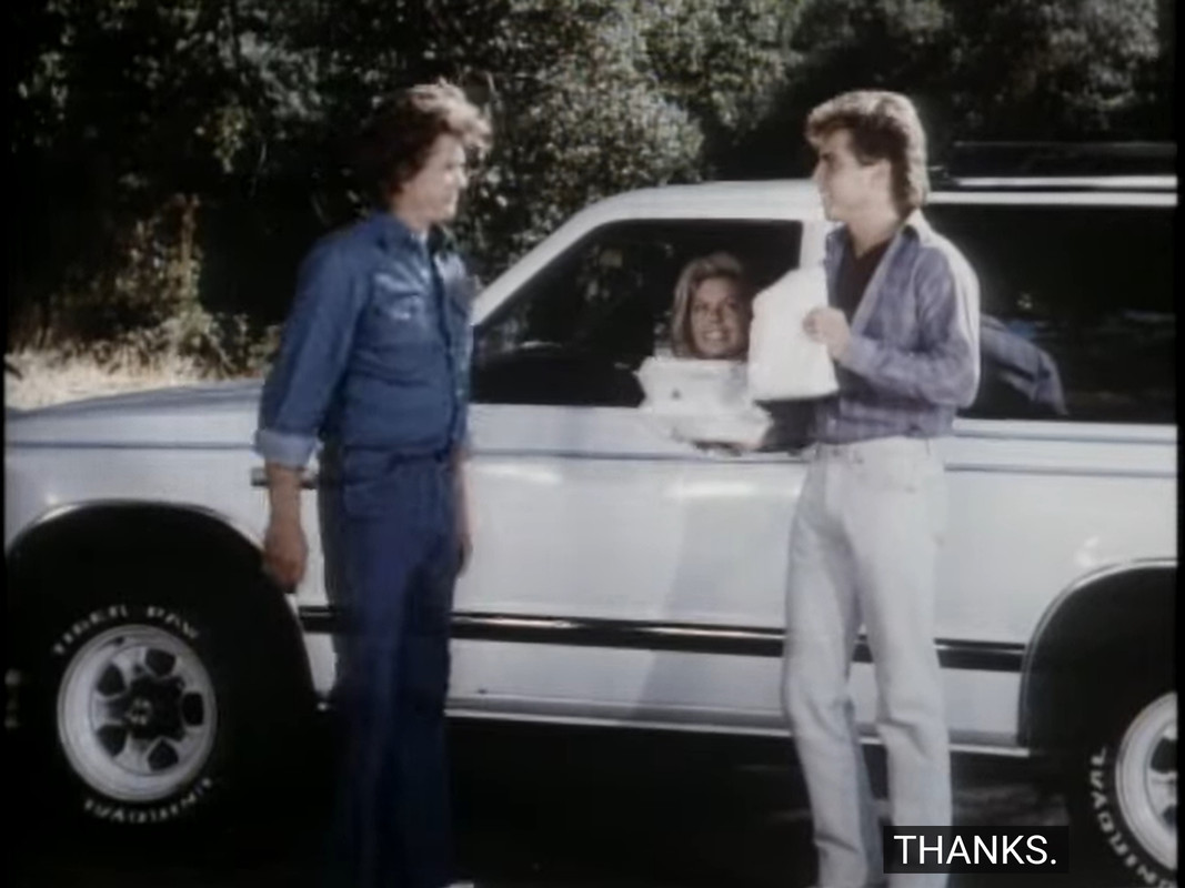 That was one of the longest horselaugh of the series. And an improvised one: in the original script of the episode, it concluded with the car breaking down and Jonathan and Mark left stranded there. However, while making the scene, French started laughing after his “Sorry” line, and Landon followed him. And they kept on going for thirty seconds straight. But that’s the good thing about having two best friends on Highway.