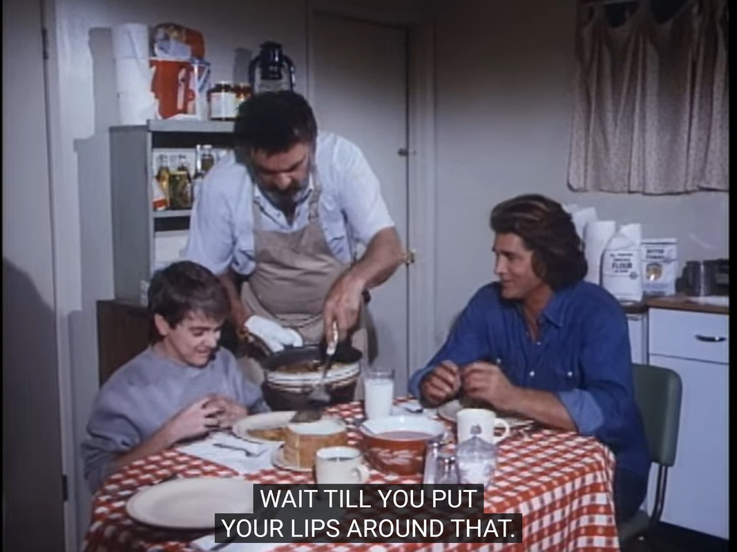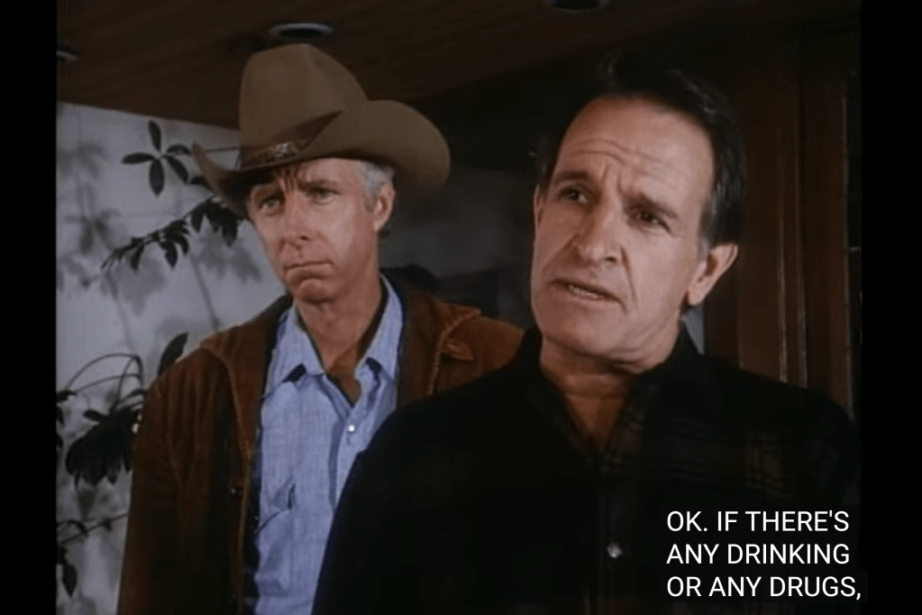 Anyway, besides the bums and the bins, there’s even a reference to drugs, just because Landon wanted to put his three obsessions in the same episode.