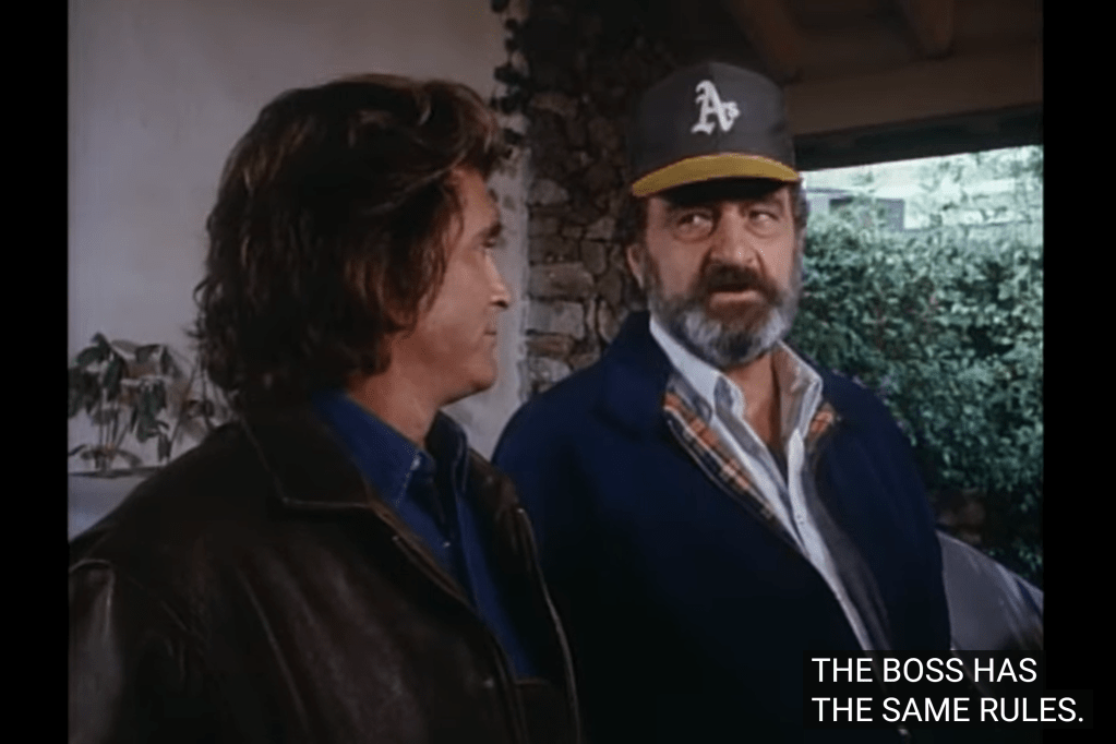Also, this episode breaks the streak of consecutive episodes Landon didn’t direct, four episodes: The Secret was by Claxton, The Monster Part 1 and Part 2 by French, and The Good Doctor by Claxton again. Of course, these episodes weren’t produced in that chronological order, so it’s not like Landon took one month off duty; yet, for the 1980s audience watching one episode every week in the airing order, it’s been four consecutive episodes without him.