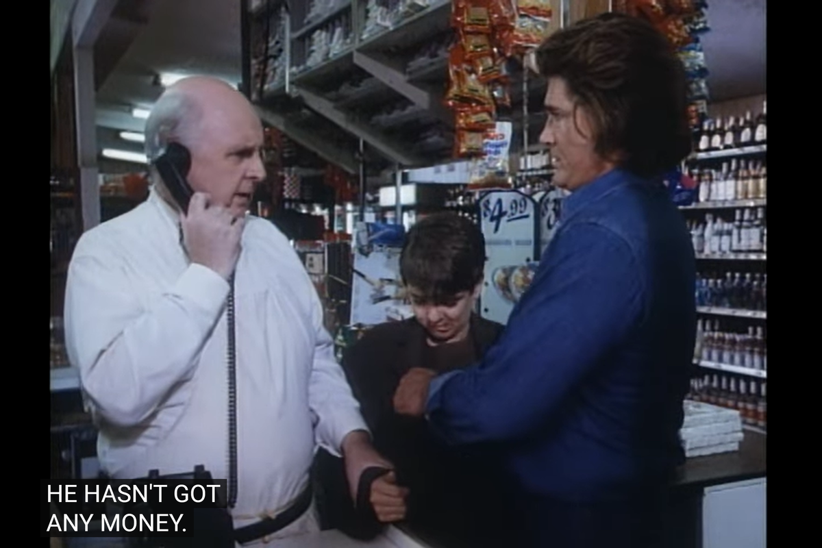 So, right when the shopkeeper is about to call the cops, Jonathan and Mark appear behind Arnie and help him out.