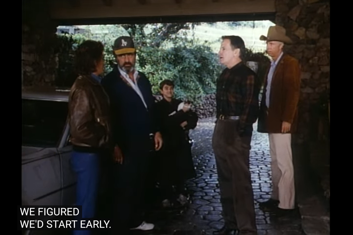 And it concludes with supposedly the same random bum that is still walking that way, behind Larry’s car.