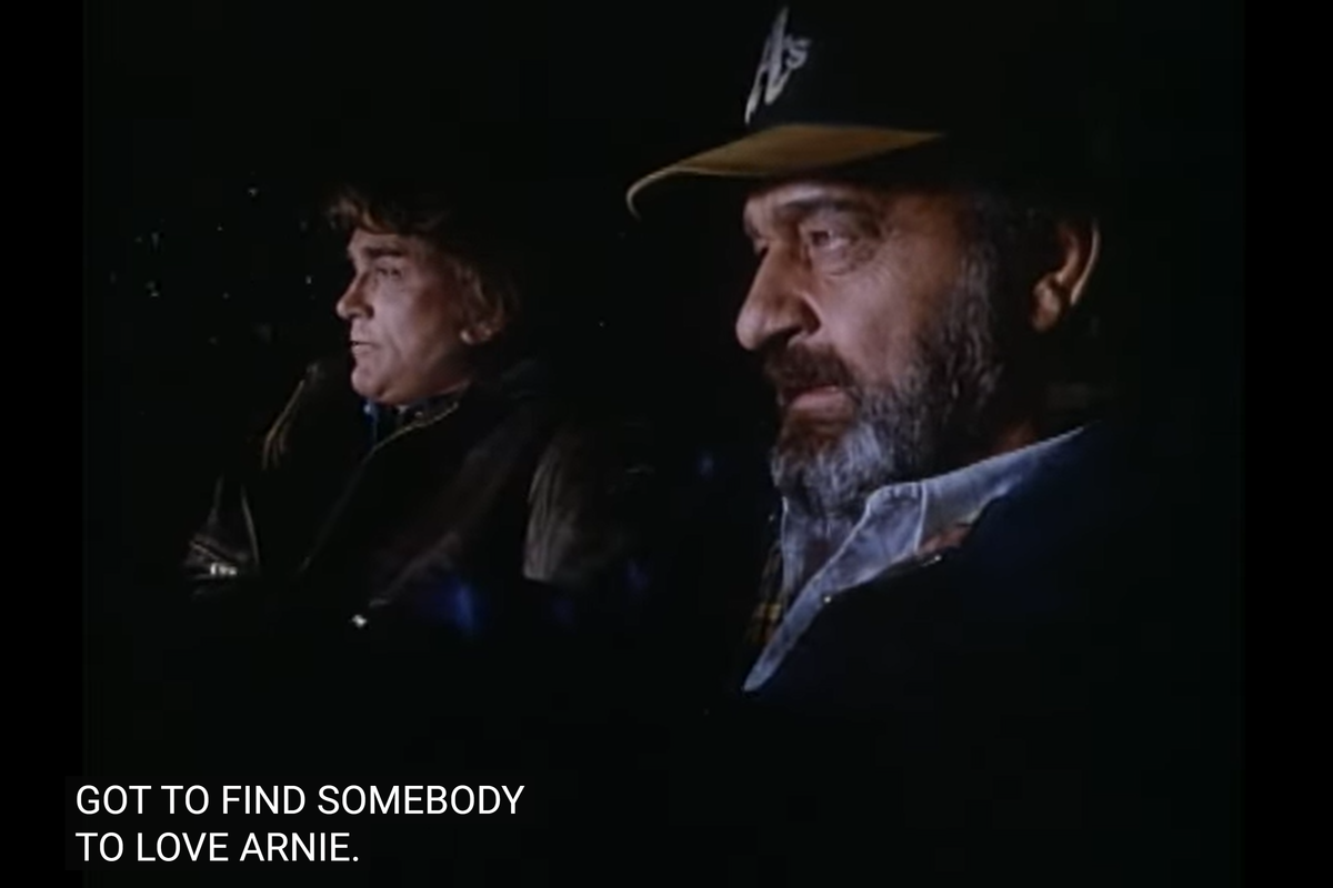 But there’s another punchline worth pointing out: when the shopkeeper accused Arnie of stealing the cat food, Jonathan tells the shopkeeper it’s because Arnie had to feed his cat, so the shopkeeper replies the kid should get a job for that.