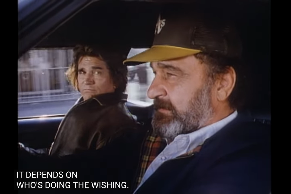 But, hold on a second: this whole premise doesn’t really work. Think about it: Mark had told Jonathan he wanted to help some of those bums, yet he added that just wanting it wasn’t enough, and Jonathan replied that the person asking it could make the difference. And their assignment is about helping a kid (that Jonathan defines as “special”) make his dream of being loved come true. So, if Arnie had asked for solving all the bums’ problems instead of asking to be loved, maybe that would have come true too.