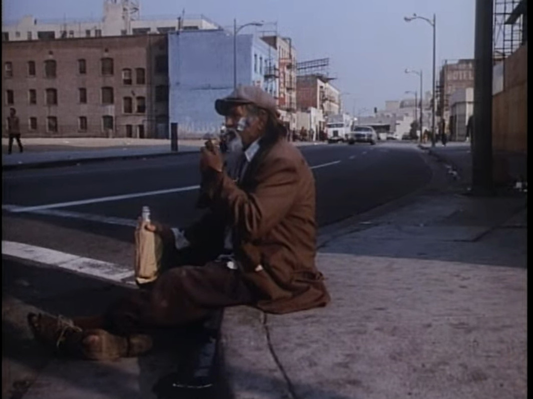 It’s a double assignment: Jonathan and Mark are driving in some random L.A. slum neighborhood, and Mark helplessly observes the surroundings and the bums all around them.