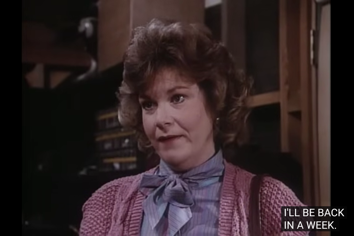 Anyway, the episode lost more than 3 ratings point compared to Alone, making it the largest rating loss between two consecutive episodes of the series up to that point (in the third season several episodes will lose even more), and it was also the first episode of the season to score less than 20 ratings point after five episodes in a row that got above that. Either way, as it is apparent by the ratings, it was still largely successful, more than most episodes that aired in January 1985 during the prior season. And such great string of success will be continued into the next episode, which, again, is going to be the most popular of the whole series.