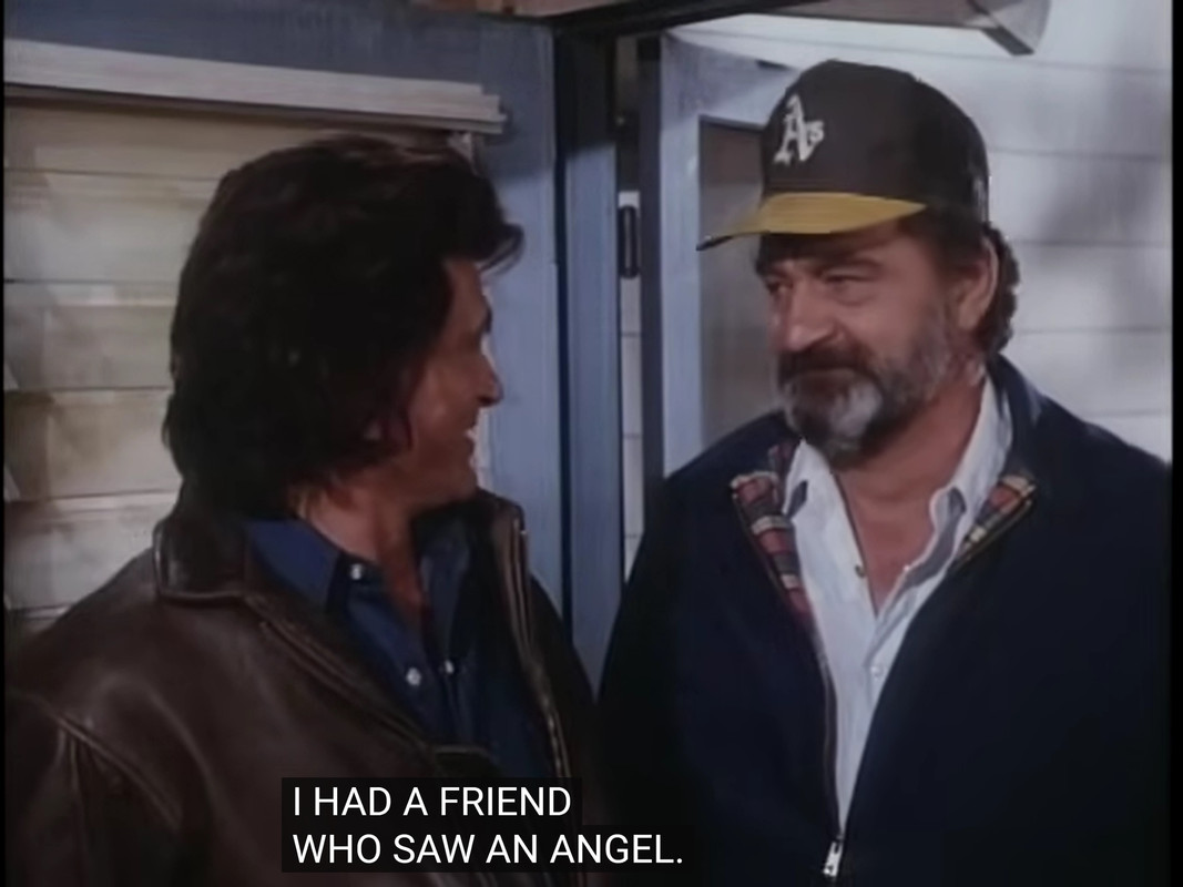 Now, if that friend is Mark, and the angel is Jonathan (and the audience knows that Jonathan is actually the angel), that might imply that aliens exist in the world, the same way as that “friend” once saw an “angel”; unless Jonathan means that he’s not an angel and he’s been fooling Mark for over a year. That would be similar to what Jonathan said in A Divine Madness, when Mark told Jonathan that the man they were assigned to help was lunatic (because he thought to be a Medieval King) and Jonathan replied it wasn’t any different than Mark believing in angels instead (implying he wasn’t an angel, or that people shouldn’t be judged based on their belief).
