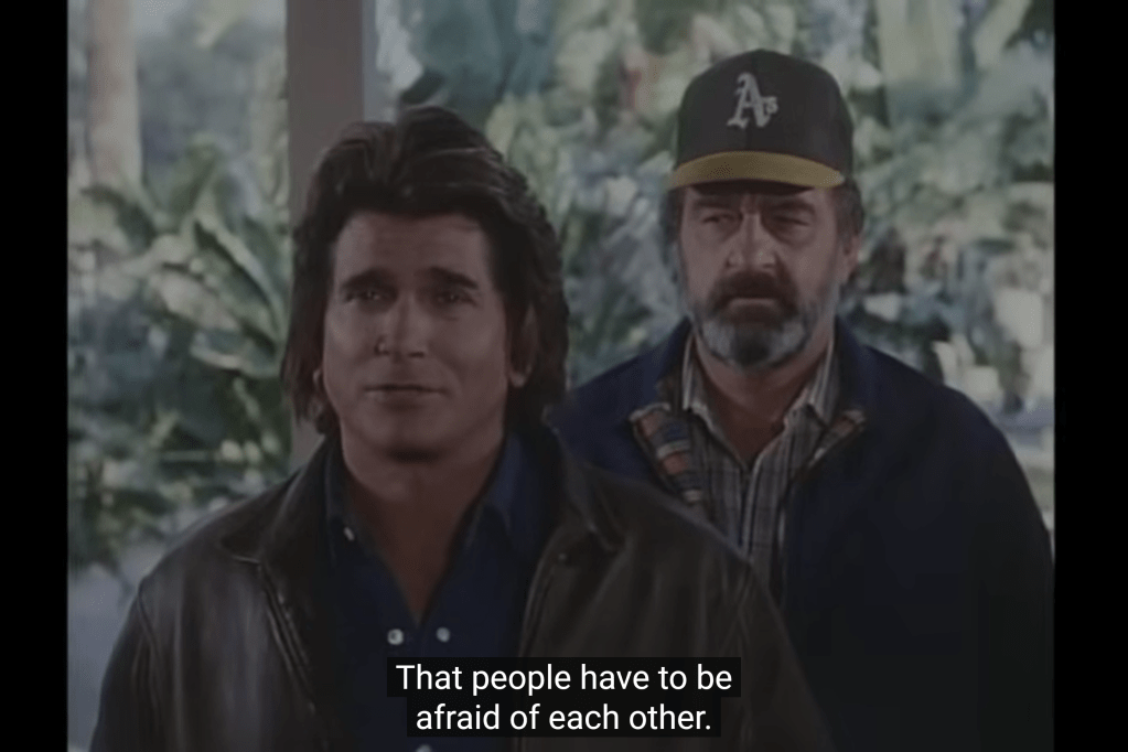 It’s extremely random and unnecessary to the purpose of the assignment. But it’s also nothing new: that’s basically the same things he told Leslie in the Pilot, when he said that people stopped trusting each other.