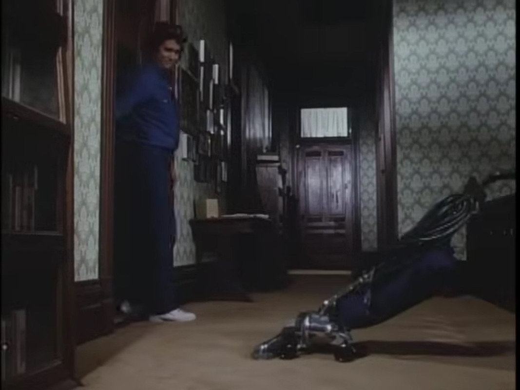 Then, he uses the power to give the vacuum cleaner to life and clean the house.
