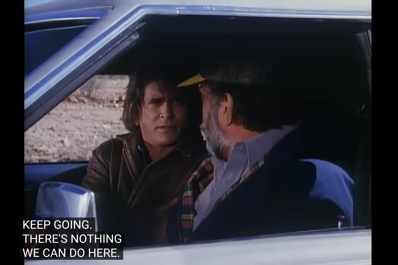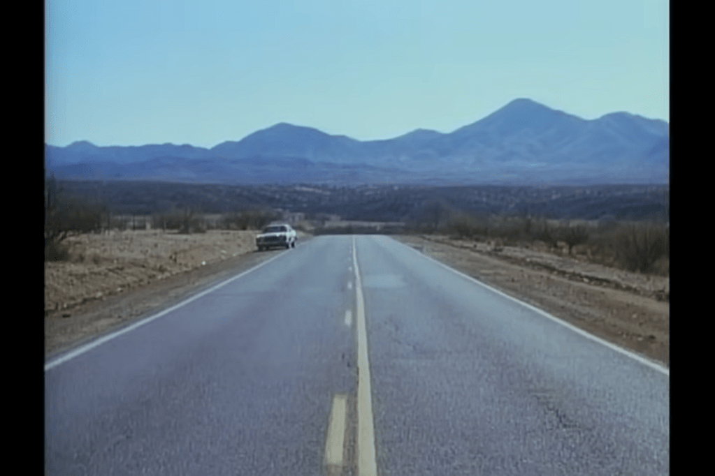 However, the curious part is that the episode does not actually take place in Arizona: when Mark wanders through a town looking for a gas station, the owner of the station is listening to the radio, which reports an accident on the “421 Highway” (the accident where the girl was killed, and which Mark considers himself responsible for).