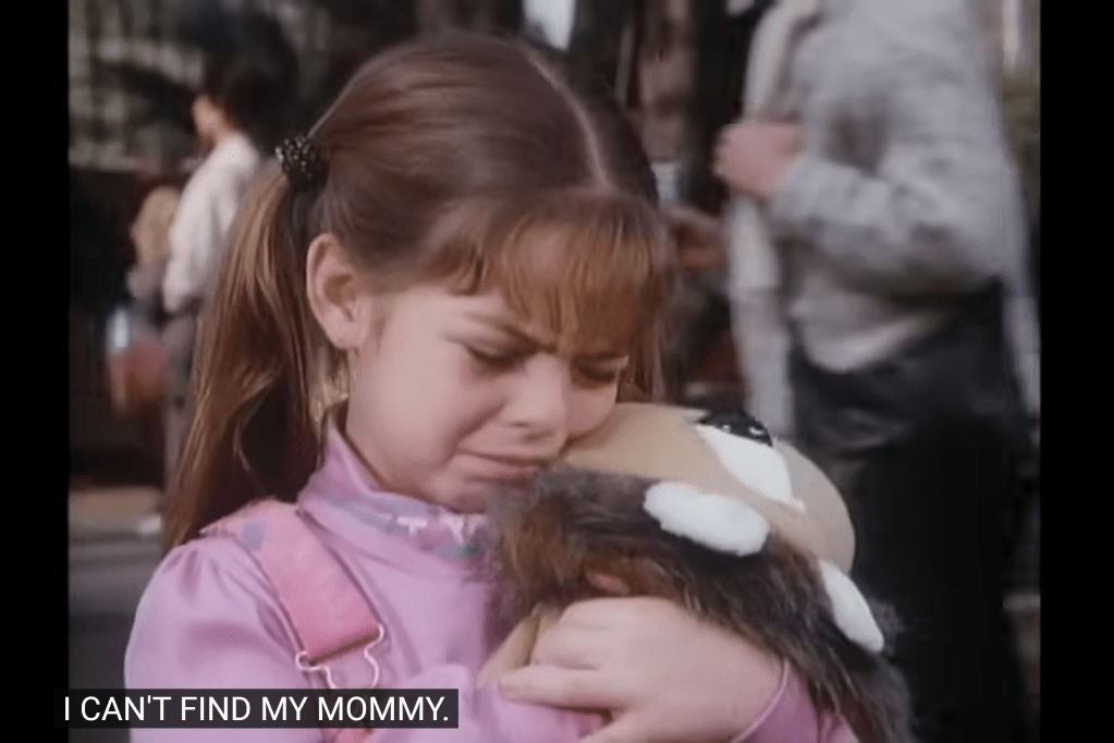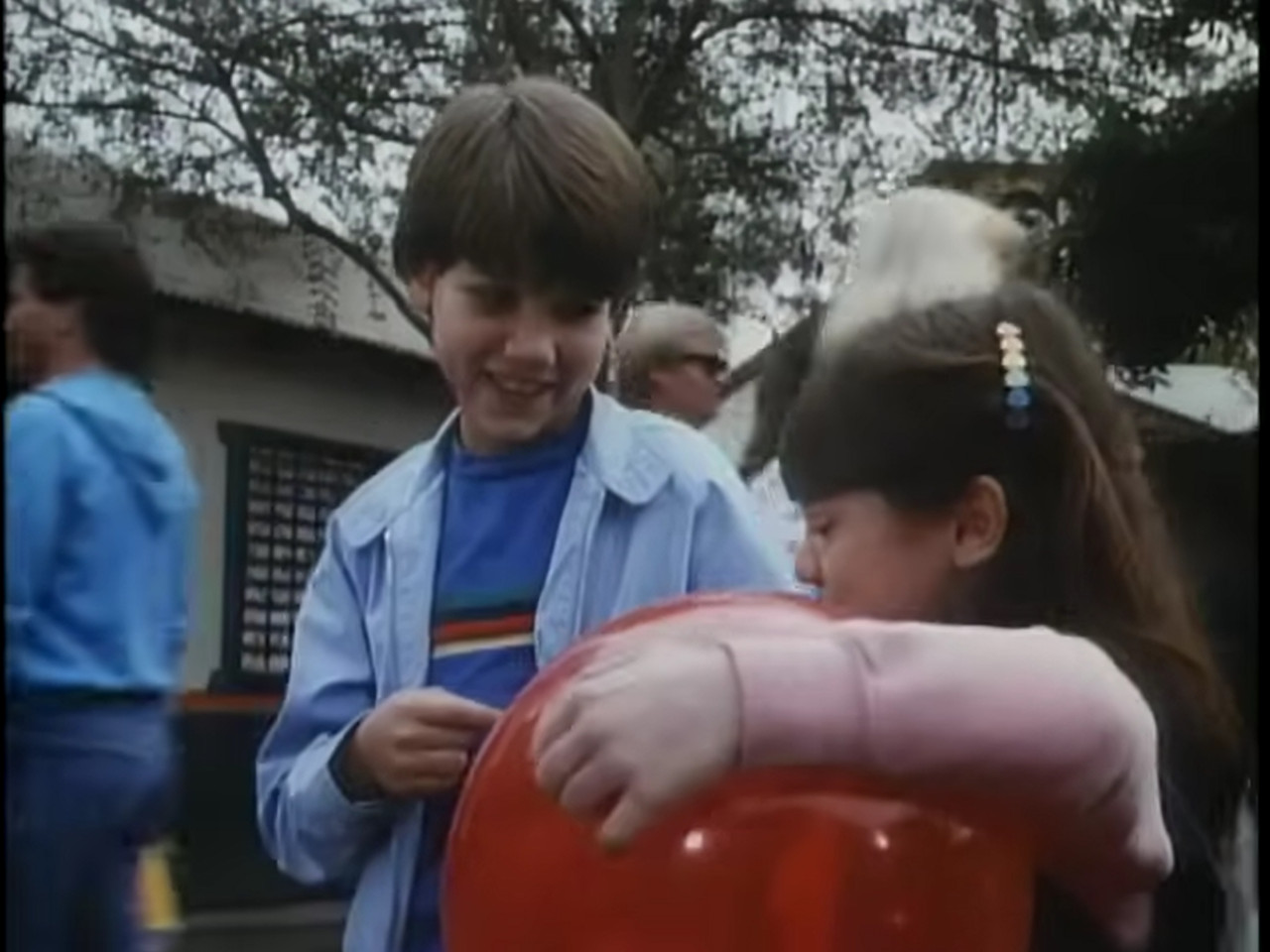 Blooper: there are two instances. One is at the beginning: when a little girl buys a balloon, she’s seen hugging it tightly, and her left hand around it.