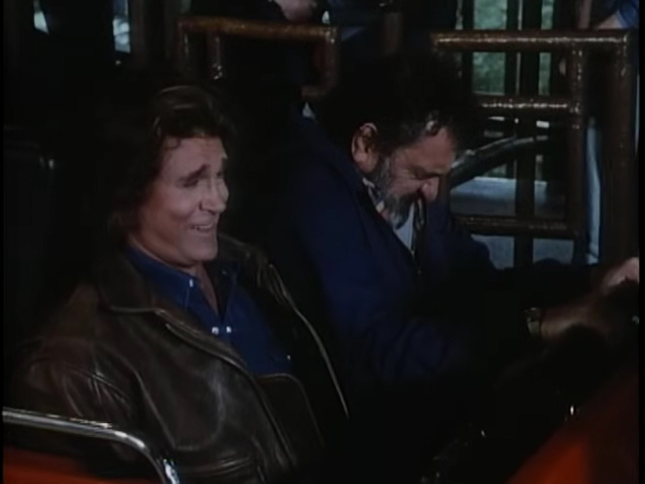 Anyway, there are some curious differences between the episode and the way it was written there. For instance, in the original script, the beginning of the episode was meant to be slightly different: it was supposed to start with Jonathan and Mark already at the roller coaster. Instead, in the final episode, it begins with them driving somewhere, and Mark reading the newspaper and commenting out loud (as he’s used to). This scene was removed when the episode went to syndication (and from the YouTube show available), yet it remained in the DVD version.