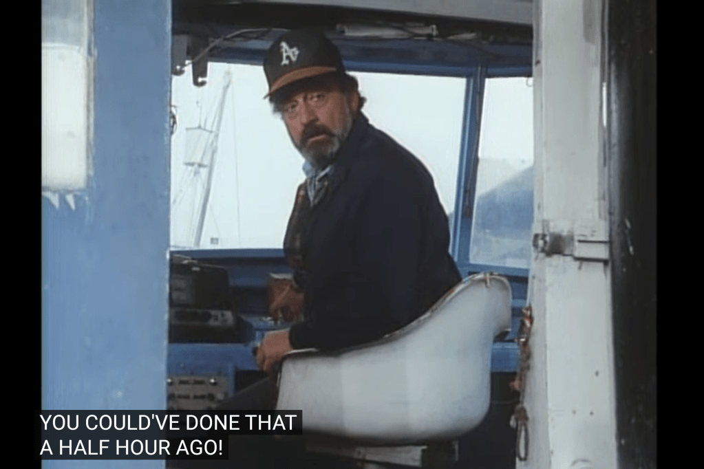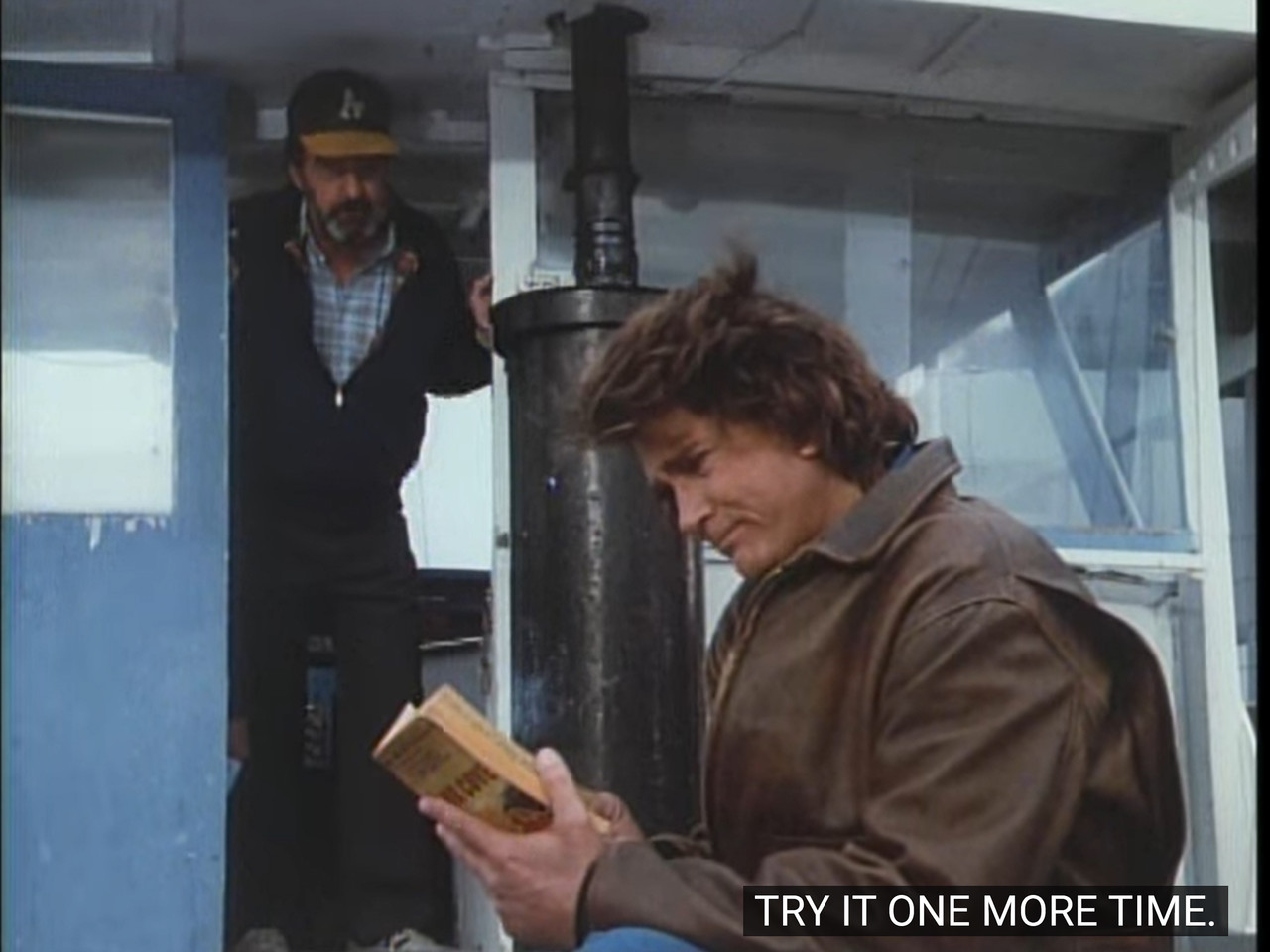 The Job: they work as sailors, and similarly to The Torch (which was also written by Lan O’Kun), the episode begins as they are already on the job. So, it’s unclear how they got it in the first place, nor whose boat is that.
