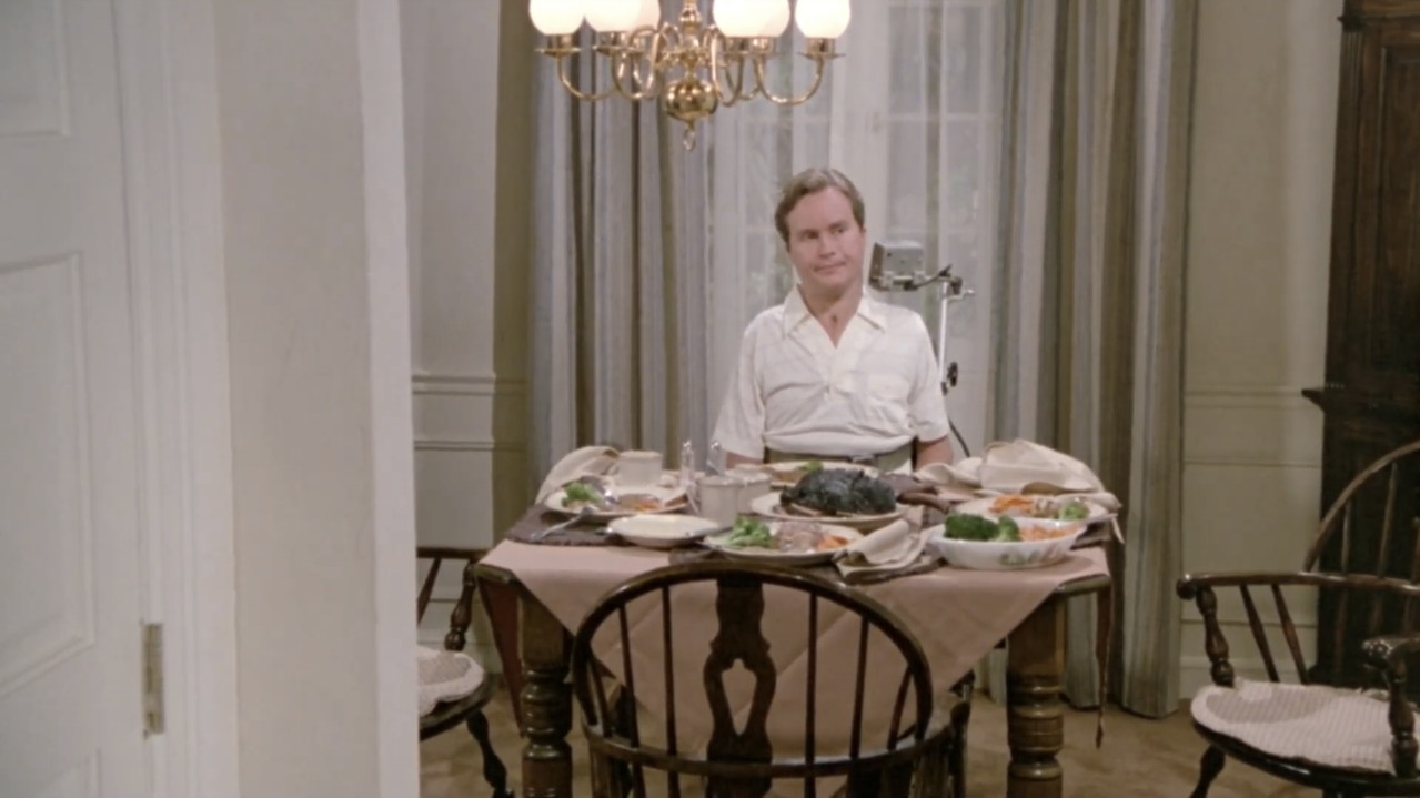 And it certainly feels like Gordon is not as familiar and confident with handling a quadriplegic life as Troesh was, considering the way he treated Scotty’s character in the episode: showing him alone in his chamber, asking Jonathan and Mark to leave without clearing the table even though Diane is crying and in no condition to do that, opening his house door by just pushing it with his wheelchair as if the door were always open, and never showing a single attendant around. Of course, anything can be justified in some way or another: for instance, considering that Diane is the housewife, maybe Scotty doesn’t need to have attendants all the time (even though Jim Troesh always had, as he specifically wrote in a 1991 article), and even though she was crying in the other room she might have cleared the table the next day. However, it seems that some details of what a quadriplegic everyday life is like have been either overltly simplified or just left out, while in A Match Made In Heaven, which was actually written by Troesh and not Gordon, there was more carefulness in the way they detailed the character’s everyday life. Likely that’s because Scotty and quadriplegic life wasn’t a core part of the episode, but that’s exactly the point: maybe Troesh would have wanted to make his condition more central, and that’s why he didn’t write it.