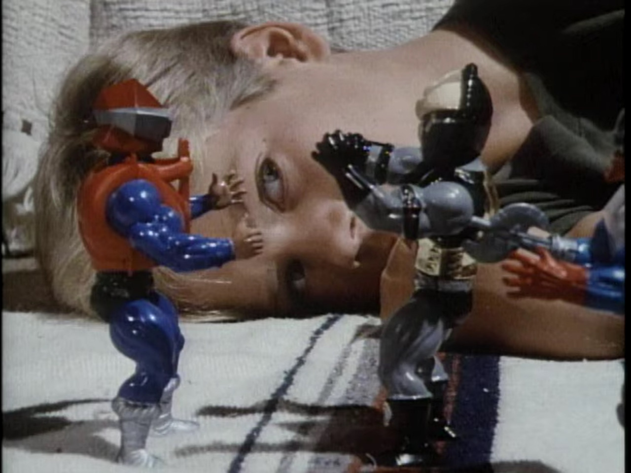 There’s even a blooper: when the kid approaches Mark to take his whistle during the second race, Mark is shown handling the toy gun with both hands, but when the kid steals the whistle, suddenly Mark only has his right hand.
