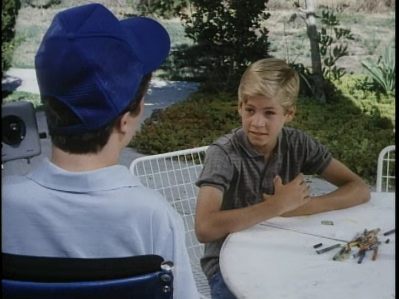 The second one is when Scotty tries to convince Todd to participate in the program, and the kid is shown with his arms folded.