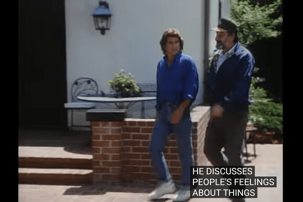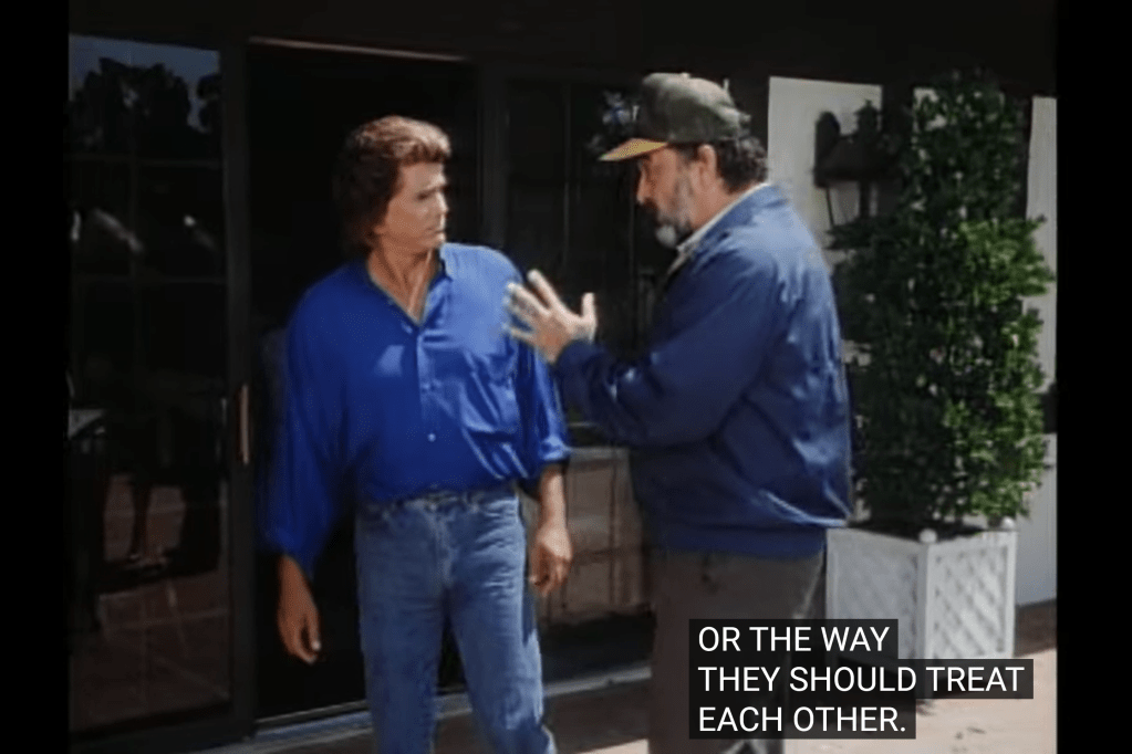 It sounds very similar to what French thought about Landon and both Little House and Highway: for instance, in an article by The Los Angeles Herald Examiner on December 1983 (to promote Look Back To Yesterday, one of the three Little House final movie specials), it seems that French reportedly protested against the decision by the network to cancel that series after its ninth season, expressing how he was was personally “concerned with a new, disturbing trend, the death of family television”, of which Little House was the latest addition. Then, he continued by talking about the three specials (two of which he had directed too), pointing out that they were going to deal with “human values, rather than being about car chases and shootouts”. It seems like they took exactly his words for Mark’s line here.