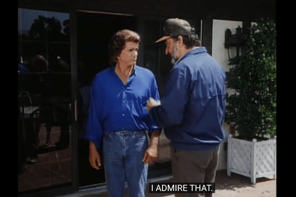 Also, this assignment seemingly makes references on multiple occasions to French and Landon’s personal career, and their opinion on the matter. In particular, when they first meet Cassidy at his house, Mark tells Jonathan that he knows Cassidy’s sitcom, and he’s happy to finally meet an actor that makes a family show, then pointing out all the violence in modern TV.